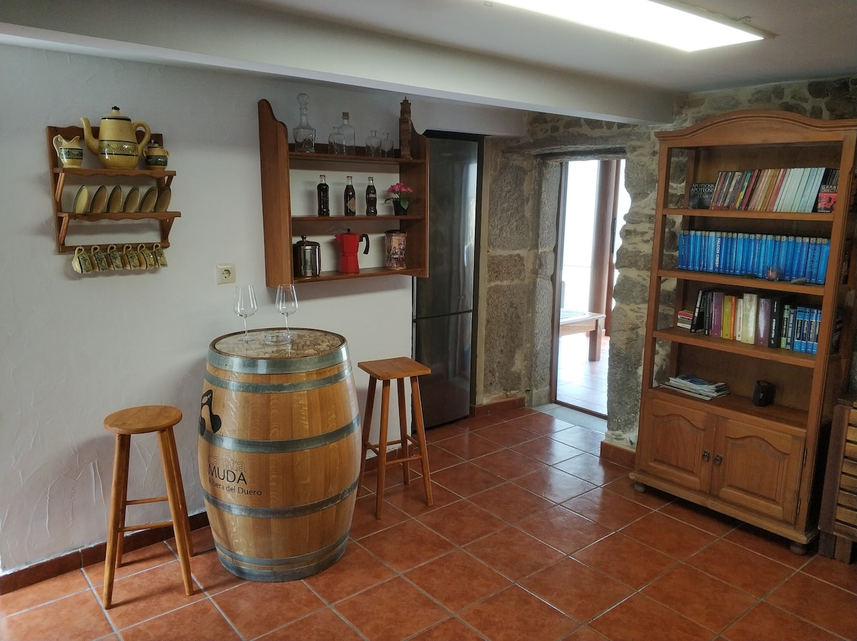 Galician boutique house in an open space (without bedrooms) with a maximum capacity for 2 adults and a child. Equipped with a double bed and a sofa bed. The design features natural surfaces mixing native materials such as stone and wood. Carefully selected accessories and great attention to detail create a cozy and unique atmosphere.