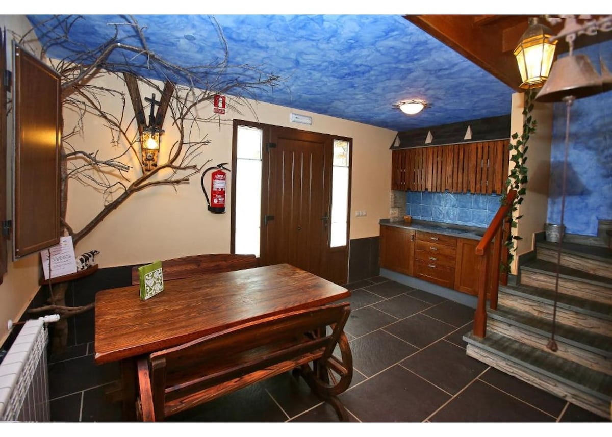 120 mc country house with rustic decoration. On the top floor there are 3 double bedrooms and two full bathrooms, and a hairdryer and a hot air heater. On the ground floor there is a toilet,living room with TV, full kitchen and dining area. It has a dishwasher,washing machine, refrigerator, microwave, blender, iron,toaster,coffee maker,juicer, vitro stove with oven, etc.