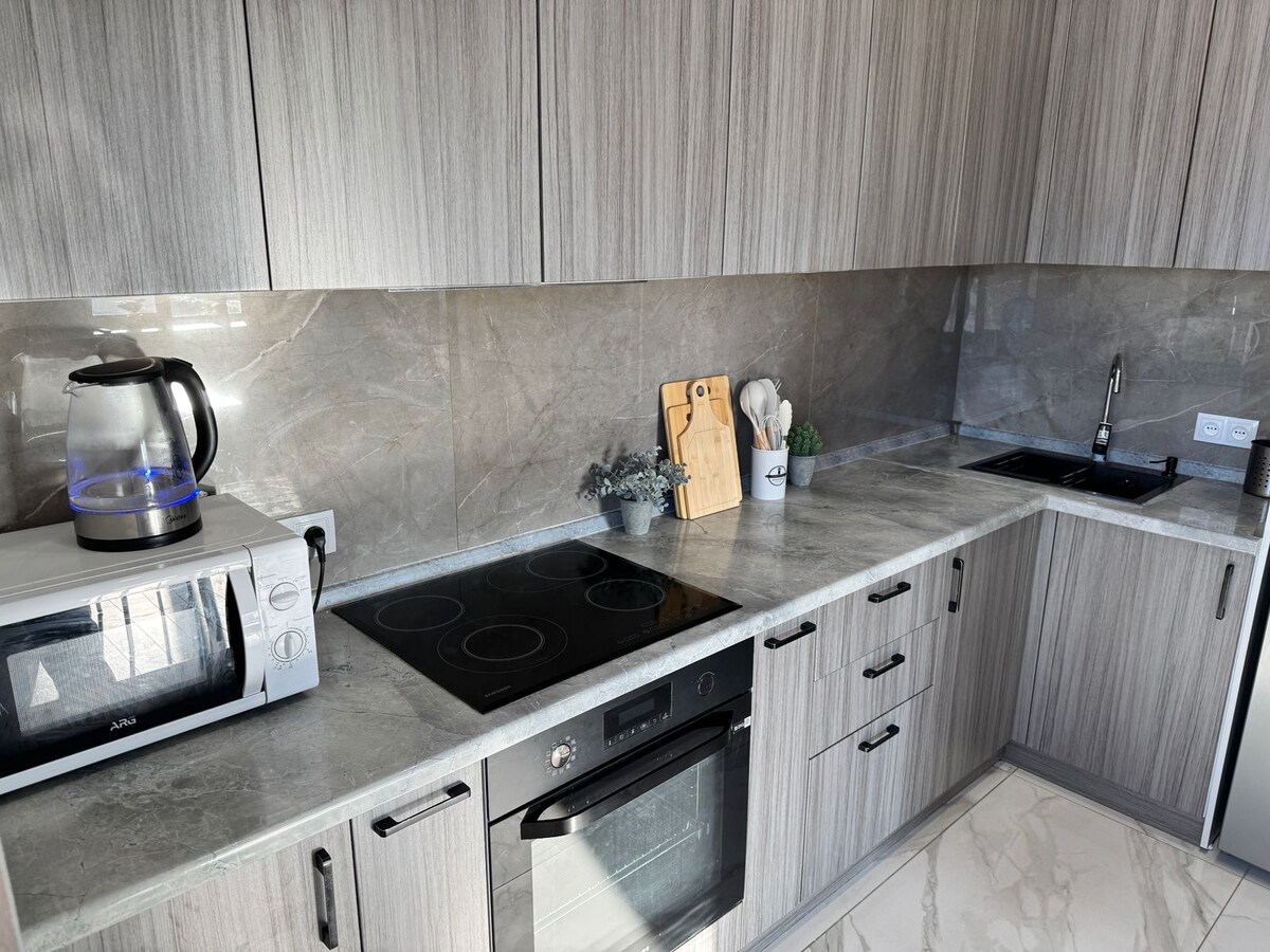A one-bedroom apartment on the 4th floor Equipped for your comfortable stay All the necessary infrastructure is within a walking distance: bus stop, park, pharmacies, cafes, canteens, bank, gym, supermarkets, clothing and footwear stores, etc. No smoking in the apartment, there is a balcony Windows overlook the yard Check-in at any time, by prior reservation, flexible terms of surcharge for early check-in or late check-out