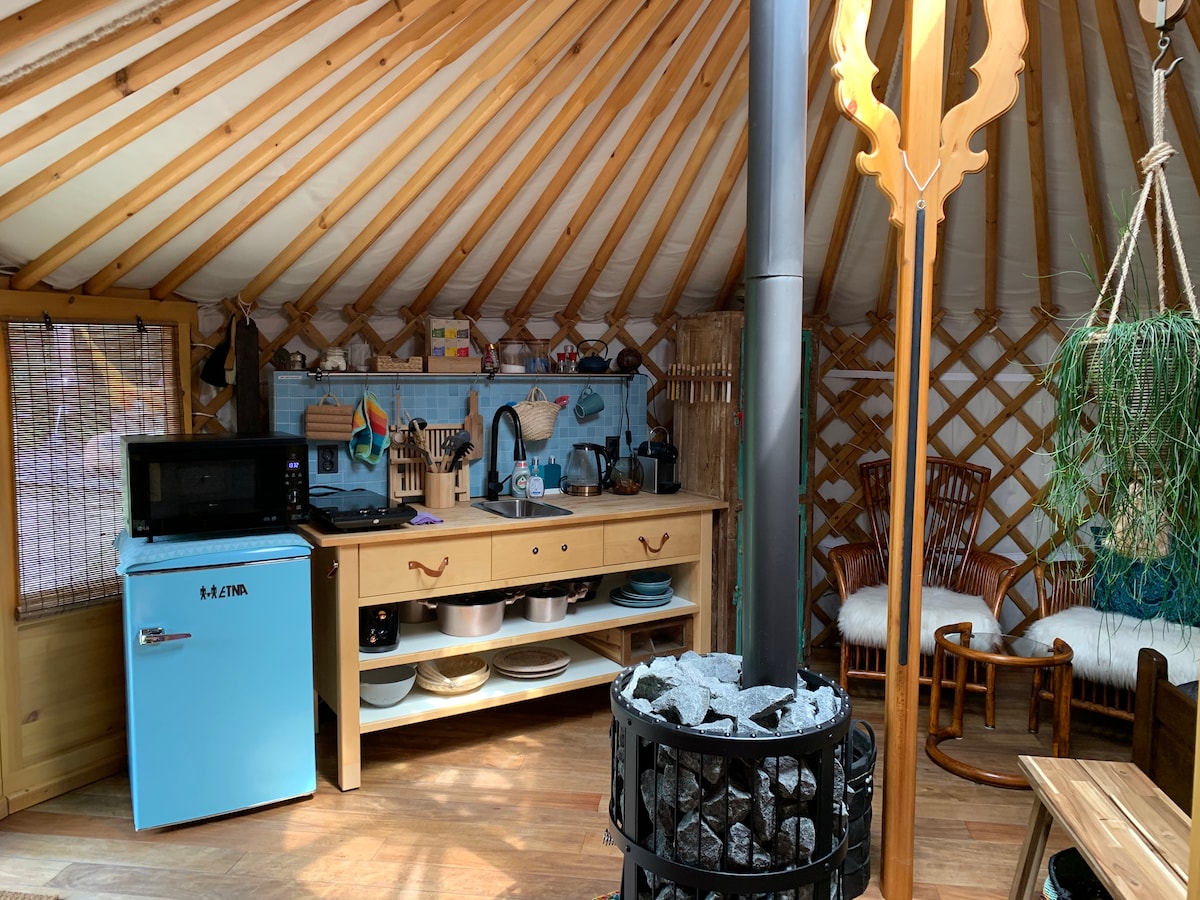 Our B&B is equipped with all modern facilities such as a modern kitchen, Philips Hue lighting, smart TV and Quooker. The cozy veranda is complete with a luxury Jacuzzi and wood stove. The B&B with large private garden and unobstructed view is completely shielded from the farmhouse by a fence and is only accessible to you as a guest. From the Finnish barrel sauna on the adjacent terrace, you can look out over the picturesque city meadows. A delicious breakfast of your choice is optional.