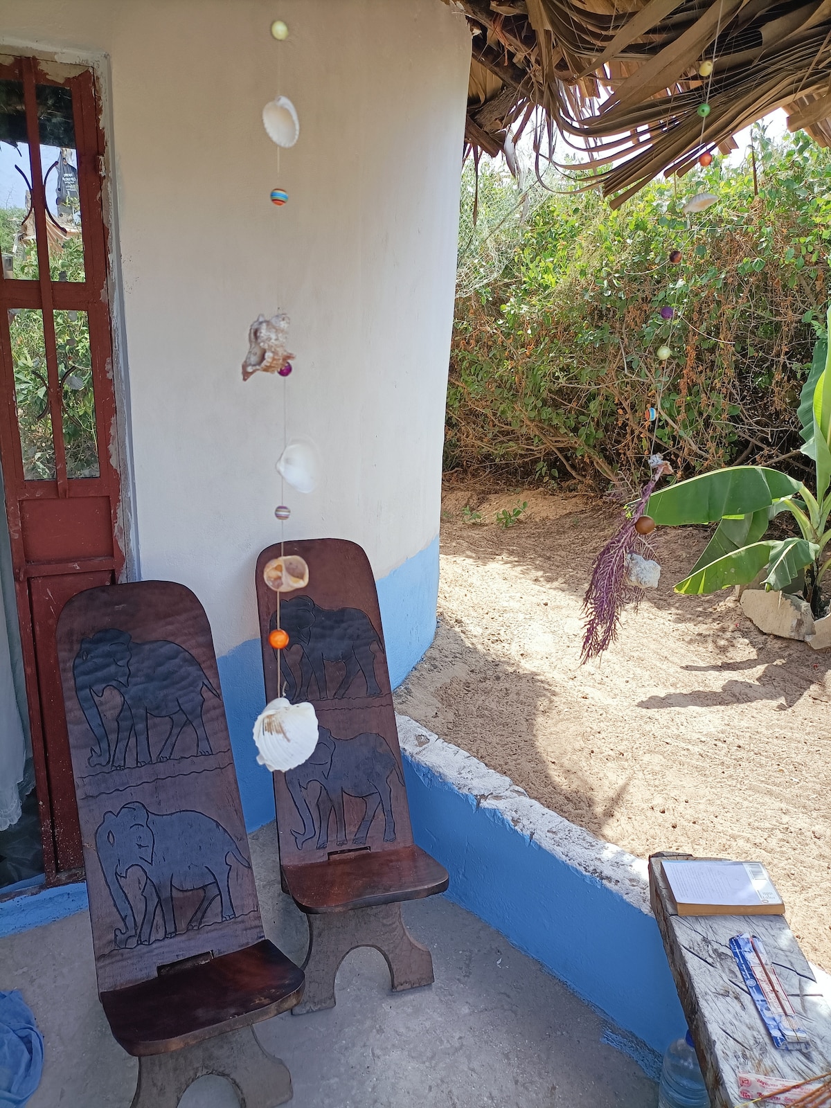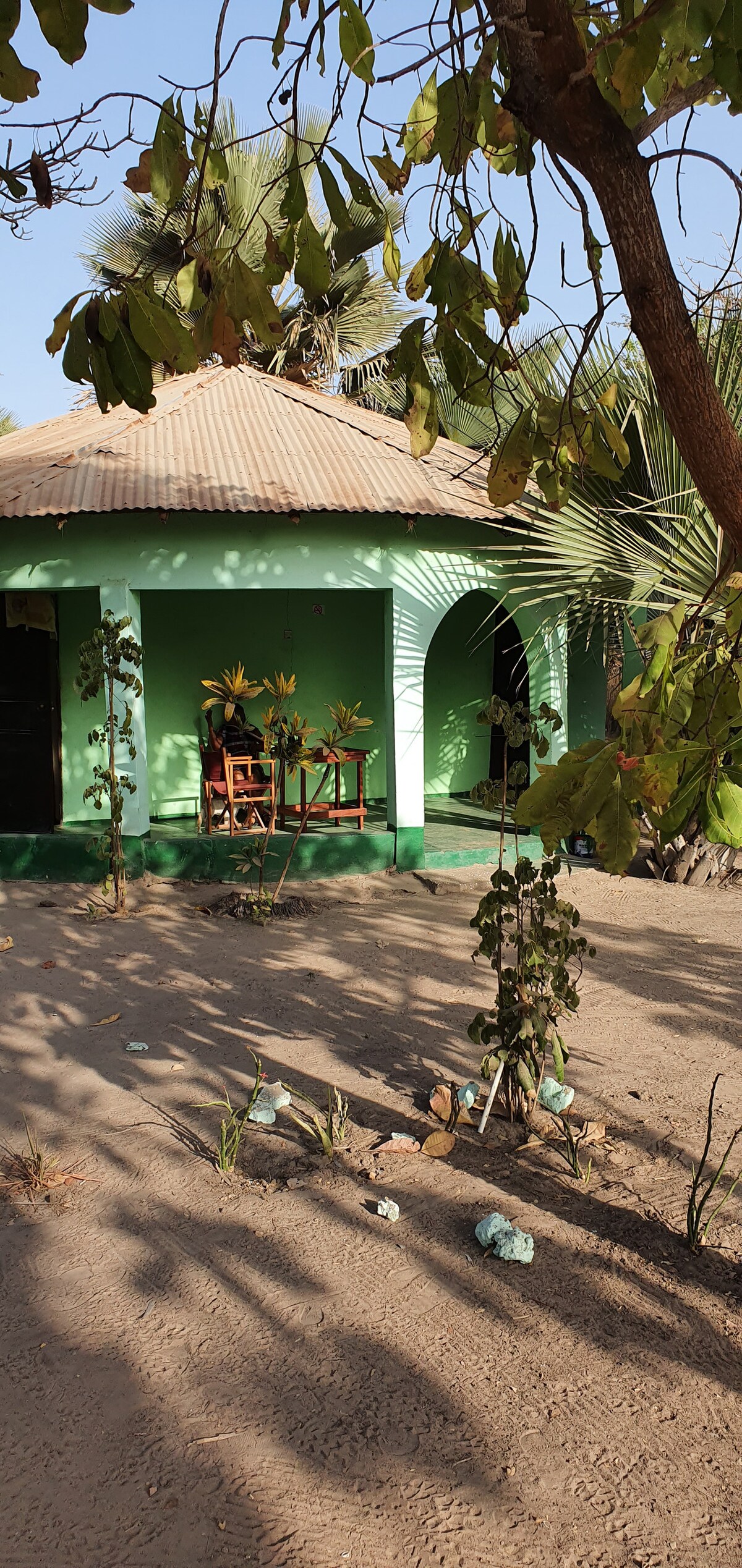 Enjoy the tranquility of the forest, just a 10-minute walk from Abene's main street and 20 minutes from the ocean. The newly renovated bungalow is solar-powered with two wells, offering a simple, traditional design and basic amenities typical of rural Senegal. It's not a luxury hotel, but secure with locking doors. You may encounter small geckos and hear local sounds—drums, distant cooking, or radios—adding to the authentic rural experience.