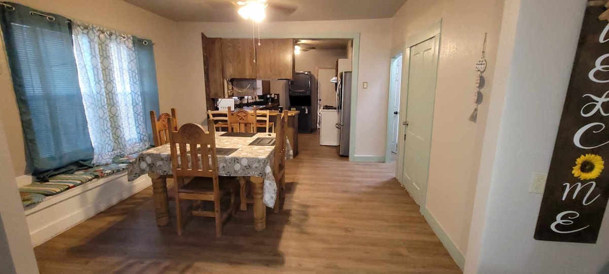 We invite you to stay at our Meander Retreat! This home has been tastefully redone and is located in the historic Sayles neighborhood. This charming 3 bedroom, 2 bath home sleeps up to 7. Bedroom 1 has a queen size bed, bedroom 2 has a full size with a twin trundle to sleep up to 3 guests, and bedroom 3 has a king size bed. We can happily accommodate families, while also providing a space for relaxing and retreating from your daily routine.