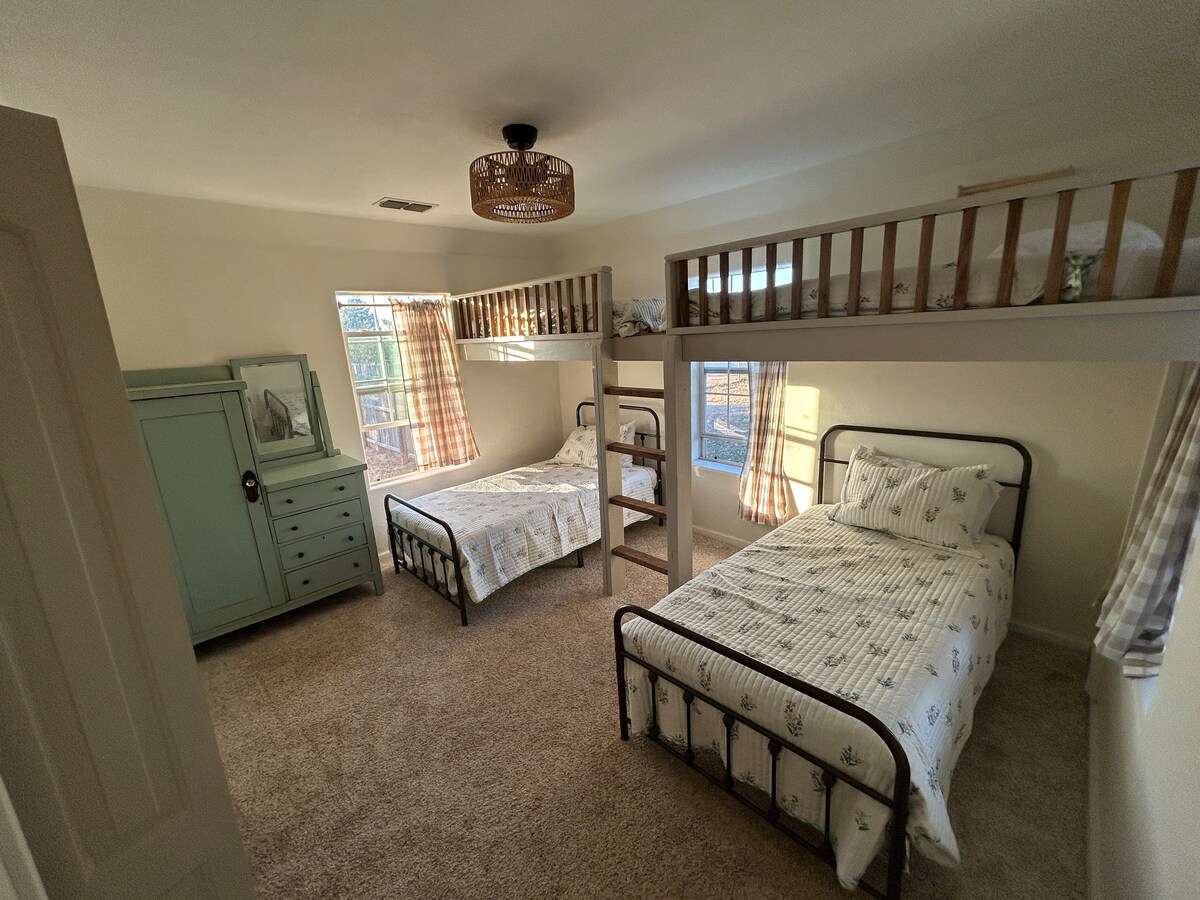 This sophisticated retreat, laced with western tones, sits less than 1/4 mile from Hardin-Simmons University and Hendrick Medical Center; 2 miles from Downtown Abilene dining, shopping, and entertainment. The ground floor features a snug living space, full-size appliances in a stocked kitchen, and the sleek sky-lit bathroom. Upstairs, relax in the lovely navy bedroom designed for a soothing sleep. We hope you’ll find this apartment to be a luxurious oasis coming off the dusty trail!