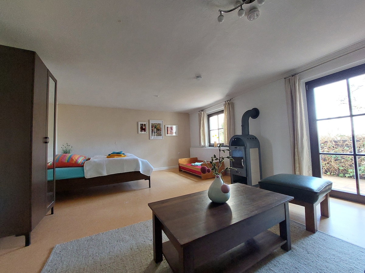 Stylish apartment with space and coziness in a quiet location. Enjoy your stay in the immediate vicinity of the historic market and with interesting excursion possibilities in Vogtland. No matter what the weather, either cozily by the fireplace or relaxed on the terrace and in the garden. The separate entrance is via 3 steps. The apartment is barrier-free and has underfloor heating. A washing machine and dryer are all present. Bedroom 1 with double bed / Bedroom 2 with pull-out bed.