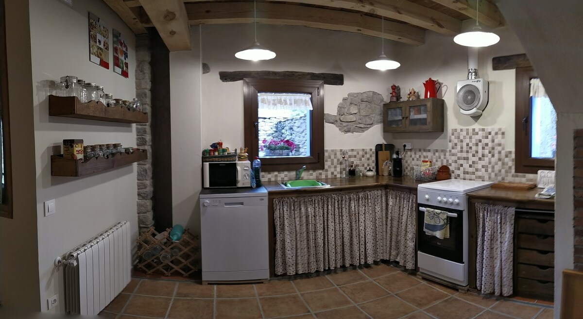 Renovated old house in a charming small village in the Pyrenees. Amazing views and plenty of sun. Fully equipped. It has 3 double bedrooms, one also with a single bed. Terrace with views. Beautiful area for hiking and relaxation, all towns nearby worth a visit. Restaurants in La Pobleta, at 10 minutes drive.