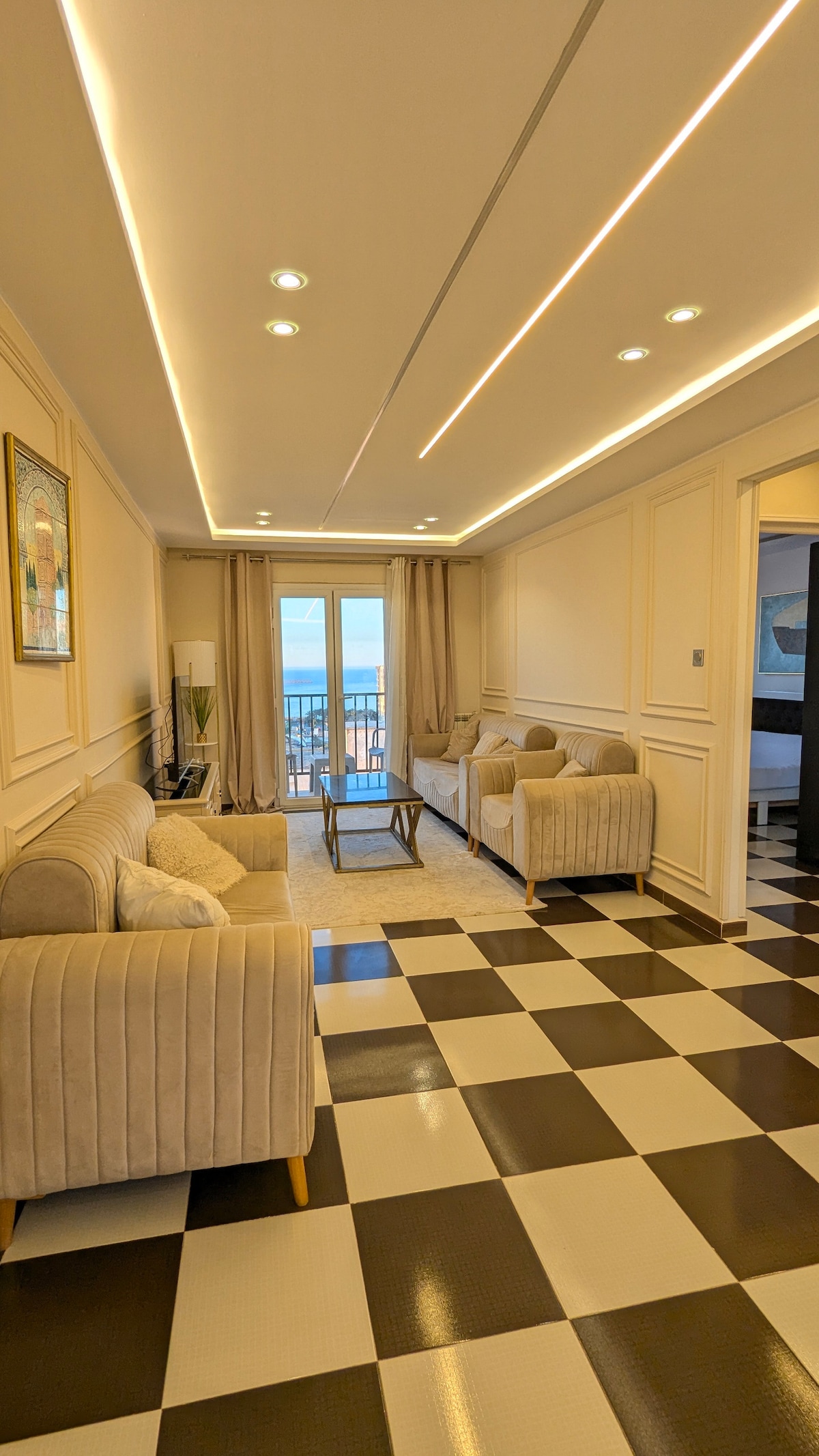 Beautiful F3 apartment with sea view located in the middle of Akid Lotfi. Modern, bright and fully equipped: Balcony with stunning views of the Mediterranean, fast WiFi, functional kitchen, air-conditioned bedrooms, comfortable living room and impeccable bathroom. Quiet area, secure, easy and free parking. Immediate proximity to cafes, restaurants and shops. Ideal for tourism, business or relaxing stay. Book for a unique experience in Oran!