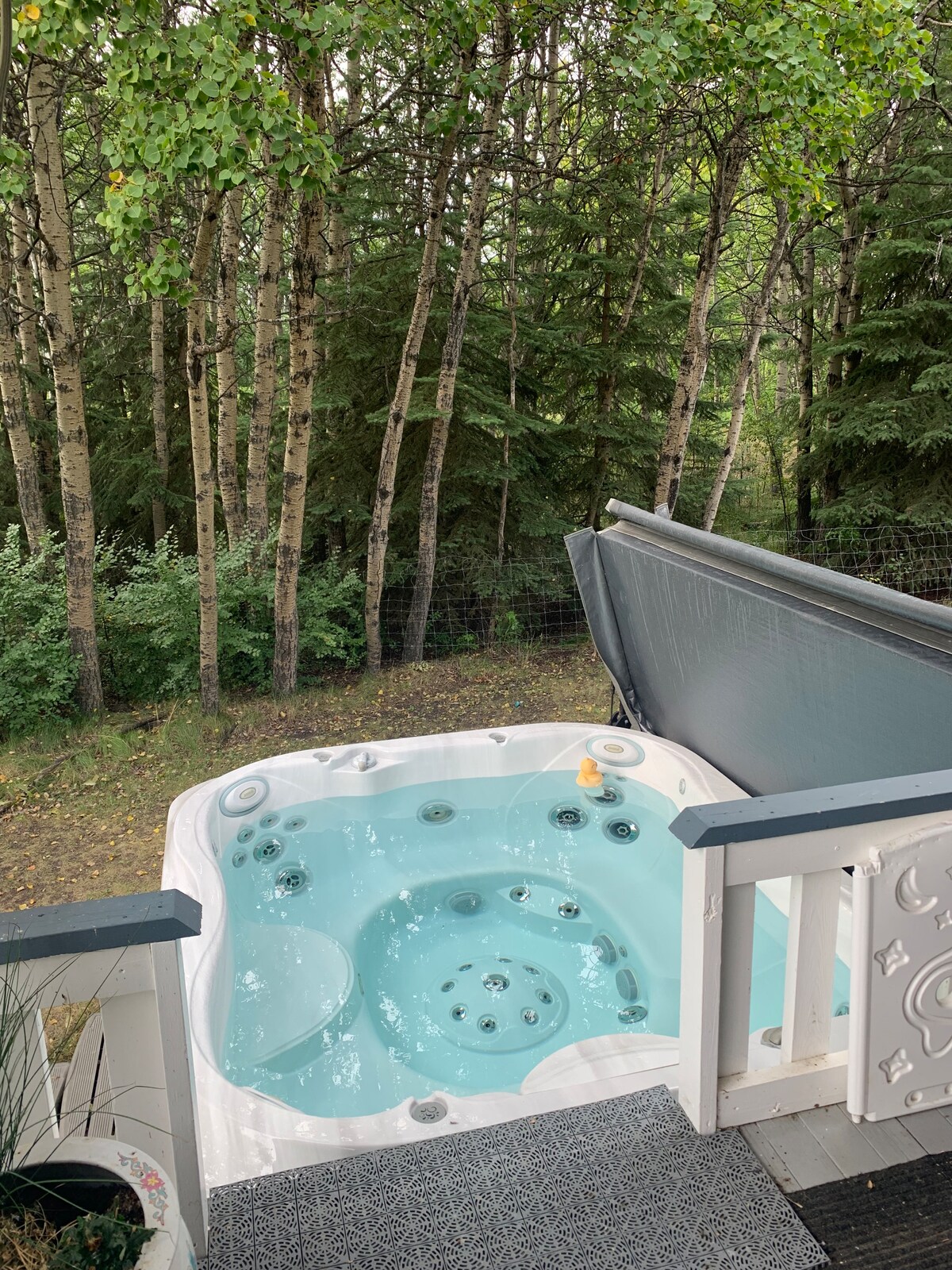 No cleaning fees! Cozy private large walk out exec suite. Quiet cul-de-sac. Private entrance. Full kitchen dining area, desk 65" smrt tv 4K Netflix, tv movies,chromecast,large living area reclining couch, sofa bed. Patio table, chairs, large hot tub lounger, fire pit. Lot backs on pond,pathway. 2 Mntn bikes avail for use. Commute times: airport 10 min, downtown 25 min. Quick access and FREE PASS to Banff Ntl. Park (skip the queue - and use the express lane). Suite is not suitable for children.