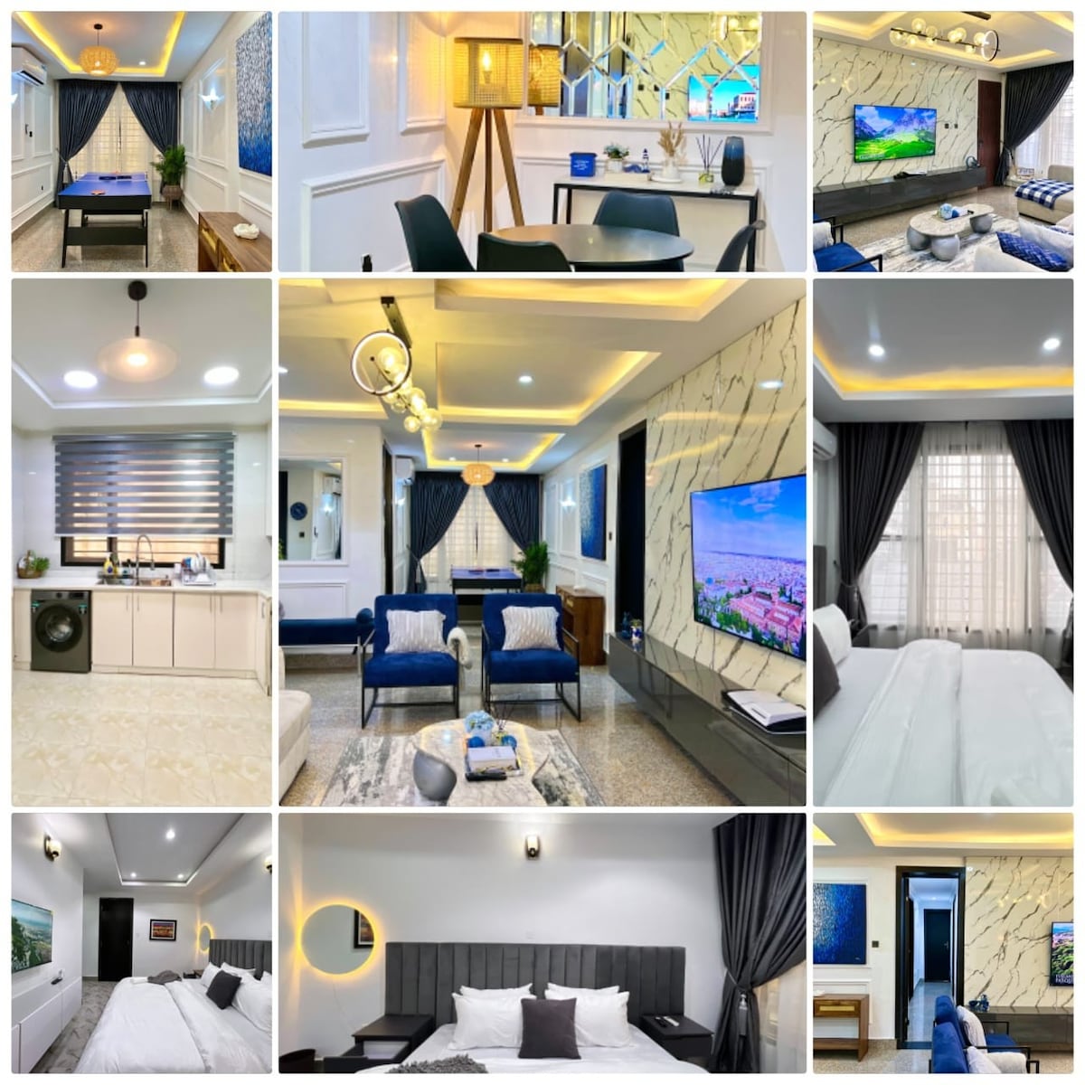 -New and fresh -24 hours power supply -Gym -PS5, unlimited and fast Wifi, Amazon prime, Netflix and dstv -House Keeping -Secured and serene estate -Clean water -spacious balcony -very close proximity to Leisure sports Park(basketball, football, long tennis and paintball) No get together or parties allowed( 2 guests max)