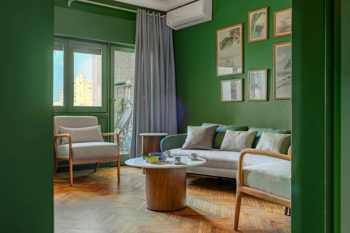 Step into a slice of cinematic history with Mint Stays Egypt – the key to your stay. Our charming apartment, a backdrop for iconic Egyptian films, invites you to relive the golden era. Enjoy breakfast on the terrace, boasting breathtaking views. The master bedroom features late 18th-century furniture, the dining room exudes timeless Art deco furniture elegance. You'll find original 1950s to 1980s film posters adorning the walls. Discover comfort and nostalgia in every corner.