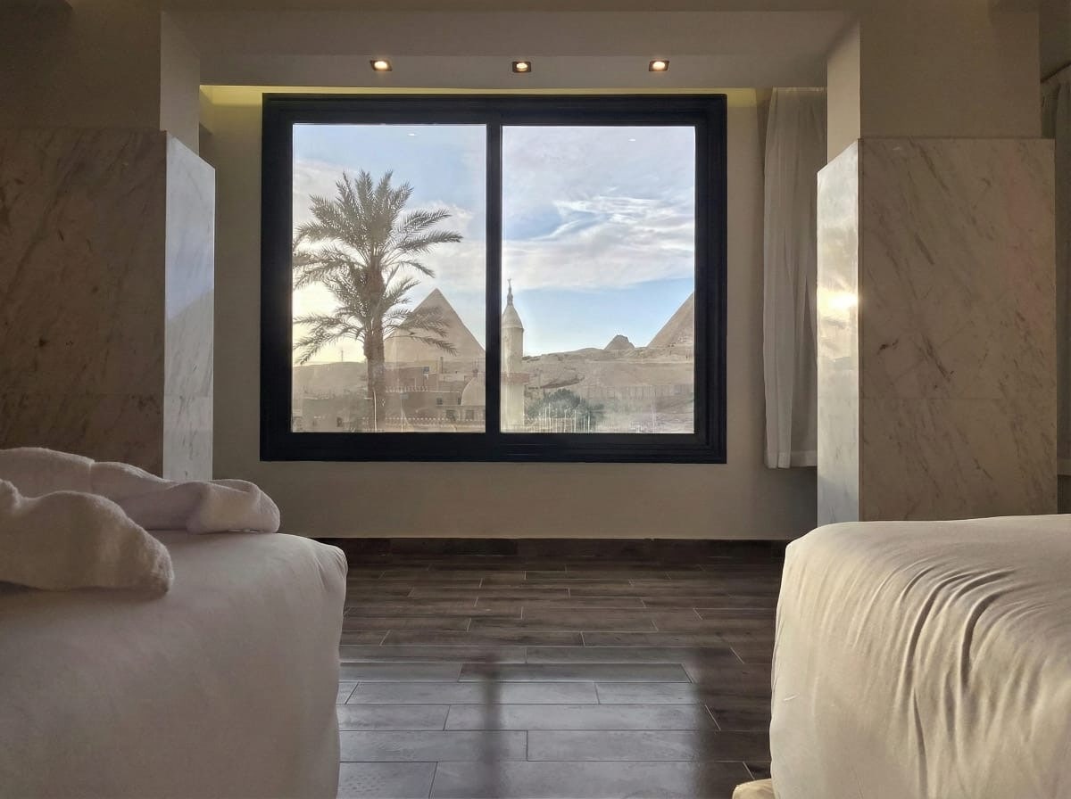 Just 3 km from the Great Pyramids and the Grand Egyptian Museum, our boutique retreat blends timeless views with personalized service. Enjoy breathtaking sunsets from the rooftop terrace overlooking the pyramids, and relax in stylish, tranquil surroundings. With warm, attentive hospitality at every turn, our hotel offers a serene escape where comfort, culture, and care come together to create a truly unforgettable stay.