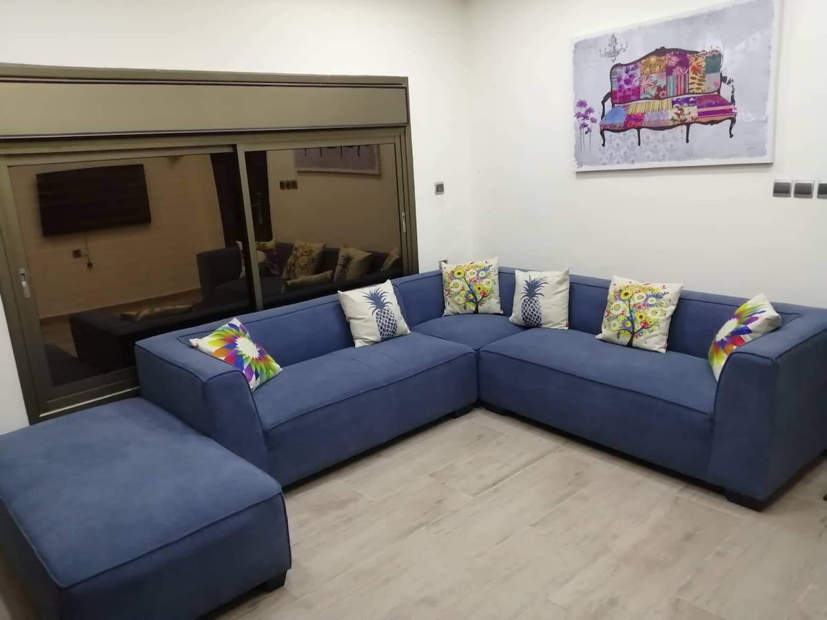 This 270m² villa features 2 connected flats(4 bedrooms,7 beds,3 bathrooms) with 3 large salons – perfect for families. Enjoy full privacy in a peaceful area just 4 min to Irbid Mall and city center,and 8 min to Yarmouk University. Highlights: Ultra-convenient – Arabella Mall, irbid city center & Al Hasan Stadium all within 5-8 min walk Serene escape– Quiet neighborhood with cooling breezes, yet steps from city life Spotless & spacious – High ceilings, natural light, and room to relax. Fast Wifi