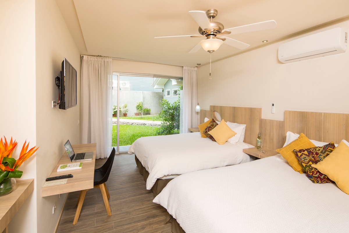 Enjoy a peaceful night in our spacious room with a comfortable queen-sized bed, set within a charming eco-friendly hotel powered by solar energy and inspired by traditional Costa Rican hospitality. After a peaceful night, wake up to a delightful morning with our buffet breakfast (extra fee), prepared with fresh, organic, and locally sourced ingredients. Every dish is handmade with care and love to give you the perfect start to your day. Come experience the true essence of Costa Rica with us!