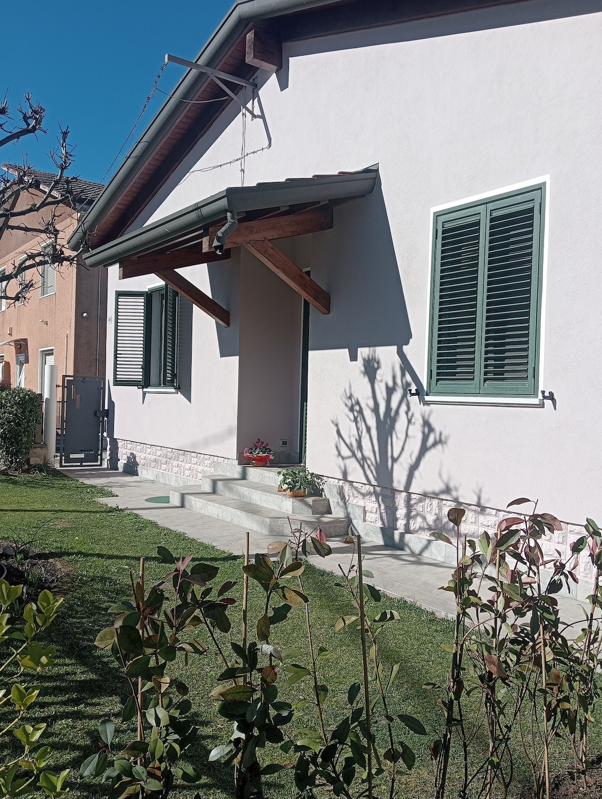 Entire newly renovated apartment, located between Verona and Vicenza in a quiet and peaceful residential area. Carefully furnished, it accommodates up to 5 adults (2 double beds, 1 sofa bed) and a child in the crib. Full kitchen with table for 6, high chair for baby and high stool for child. Spacious bathroom with comfortable shower, storage room with washer-dryer and ironing board. Parking is always available on the street in front of the garden. Min. 2 nights, 1 night on request (to be verified).