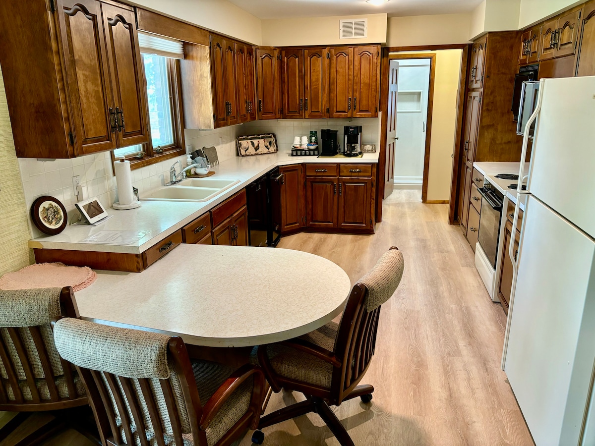 Adorable 1950's charmer that is family friendly. This house is on a large lot in a nice community. Enjoy the modern conveniences while staying in our 3 bedroom home all to yourself. Full bathroom with a tub/shower. Fully equipped kitchen with nice dining area. Washer/dryer 3 bedrooms (2 Queen and 1 Full size), and air mattress. Large fenced in backyard. Lot's of parking WIFI is provided for our guests & smart TV. Small town dining. Walking distance for convenience. Keyless entry,