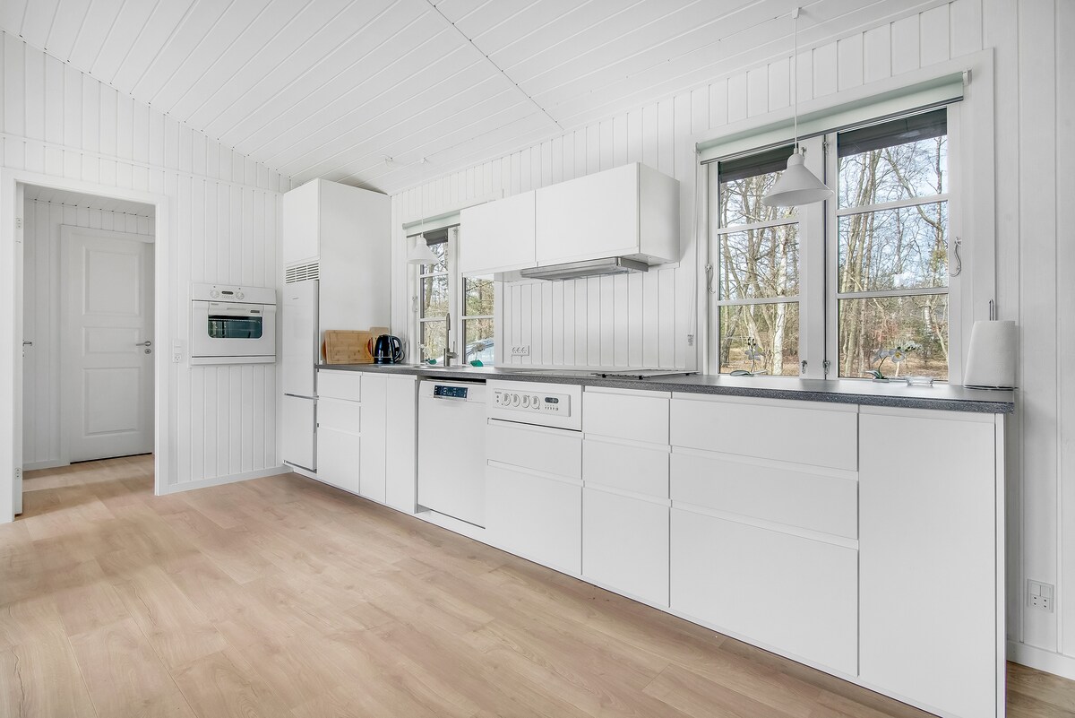 New floors, kitchen, and furniture done in 2024. See newest photos. Our cozy house is located in a protected forest on Bornholm near Due Odde. The house is located 1 min. walk away from one of Denmark's best sand beaches, that you usually will have all to yourself. Grocery shopping is 6 minutes away. The area has beautiful nature trails, where you won’t meet many people. The home has 3 bedrooms, a conservatory, a bathroom and a big kitchen area. Besides that there is also a large terrace.