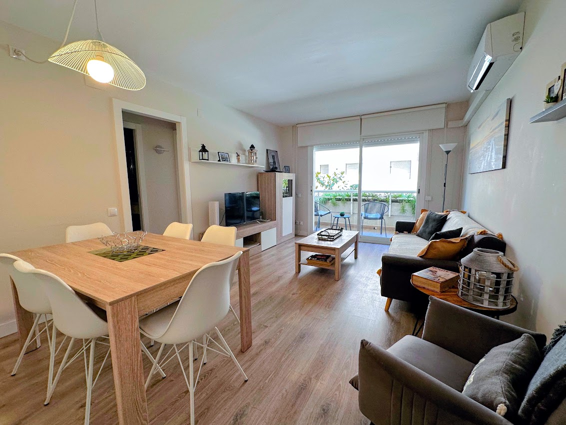 Beach Apartment in Salou Wake up to the sound of the sea. Go for a morning walk on the beach or take a refreshing swim. Relax in a spacious apartment with a beautiful sea view. ★ “Beautiful apartment just steps from the beach.” ✔️ Balcony with sea view ✔️ 2 bedrooms ✔️ 2 bathrooms ✔️ Living room with 55" TV ✔️ Fully equipped kitchen ✔️ Just a few steps from the beach ✔️ Air conditioning ✔️ Quiet location, close to restaurants, bars, and supermarkets