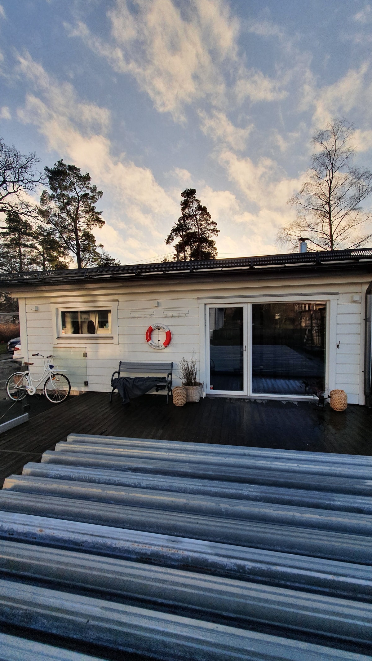 Ett boende med fantastiskt läge vid havet endast 10 meter från vattnet. Med utsikt över Stockholms inlopp ser du båtar och fartyg passera utanför huset som har en terass mot havet. Stugan ligger endast 12 km från centrala Stockholm och ligger avskilt från huvudbyggnaden där vi själva bor. Naturreservat för promenader och löpning ligger ett stenkast från stugan. Den vedeldade badtunnan som står på vår brygga går att hyra för en kväll. För tillfället under reparation. Tillgänglig från 15/5.