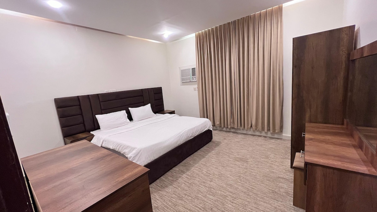 A fully funished serviced apartment with two bedrooms, a living room, and a full kitchen! We offer free house-keeping, wifi, Tv, grocery delivery and more. feel like home while you're in Al-Ula.