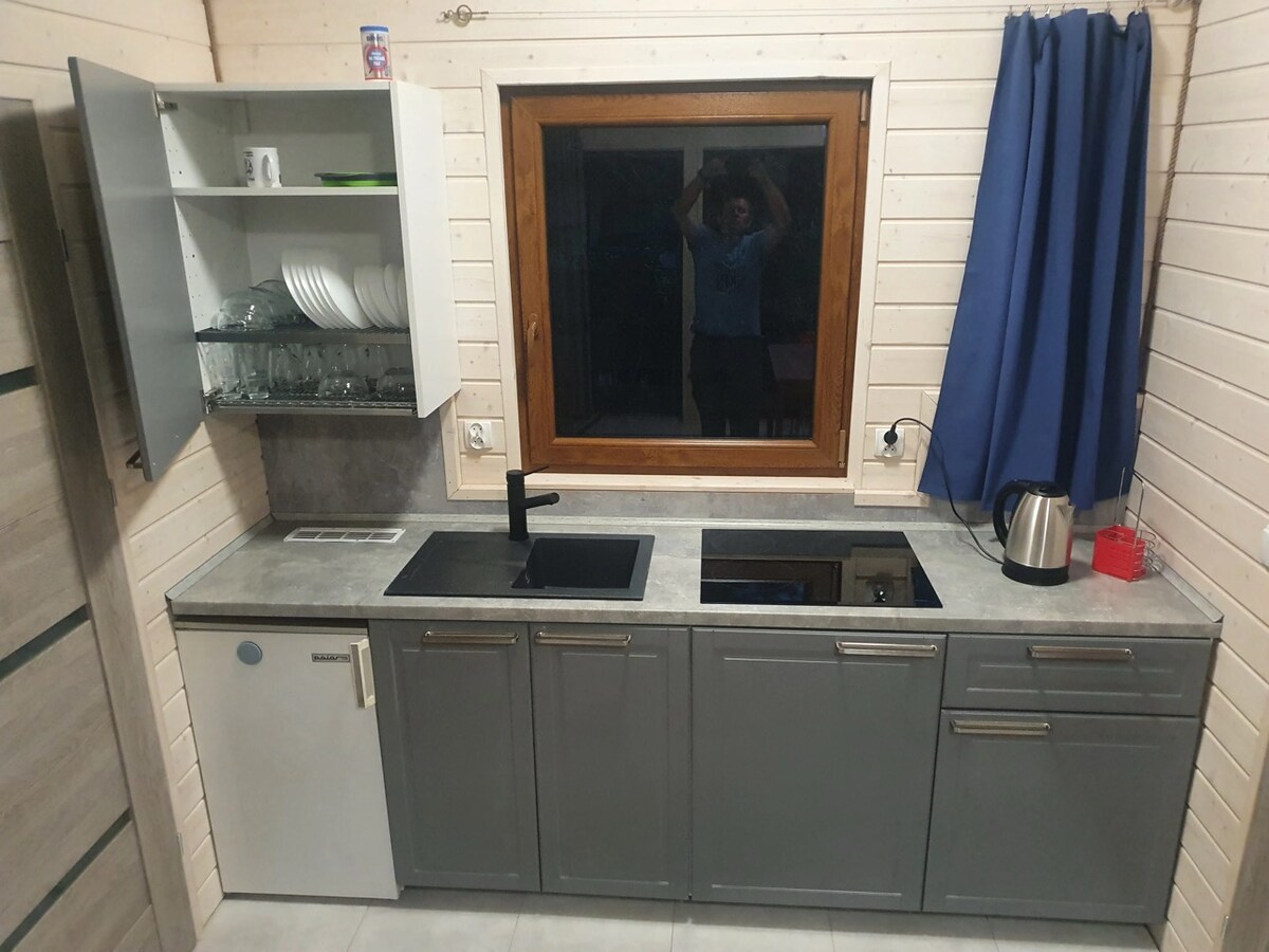 A wooden house by the lake, in a quiet and beautiful area. Perfect for a family vacation as well as a place to work in concentration. A boat, kayak and 2 bicycles are available. The house is heated by a fireplace and also has electric heating. Wooden house near the lake surrounded by beautiful nature. Excellent place for family vacation or to calm down a bit. For your use there is a boat, a canoe and two bikes. There is a fireplace and electric heating as well.