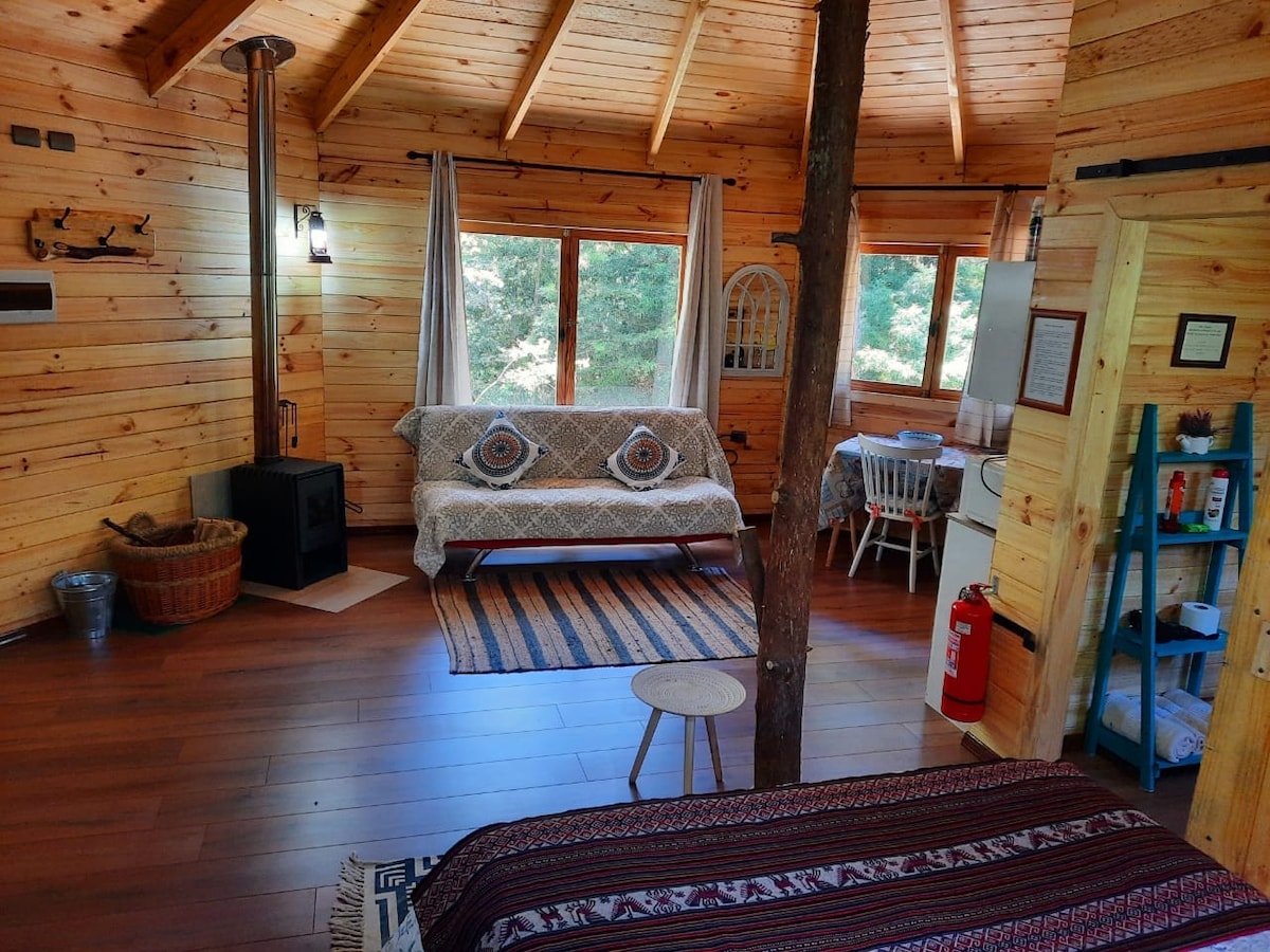 Beautiful and cozy small cabin, ideal for couples. 10 minutes away from Termas de Chillán. Rustic style and design with attention to delicate details. Fully equipped. Tree House: "Cóndor" guarantees a very nice bed and sheets, towels, basic toiletries and all the kitchen utensils that will make your stay a moment like home in the middle of the mountain. Jacuzzi at additional cost. With High Speed Satellite Internet !!! Your pet is welcome !!!