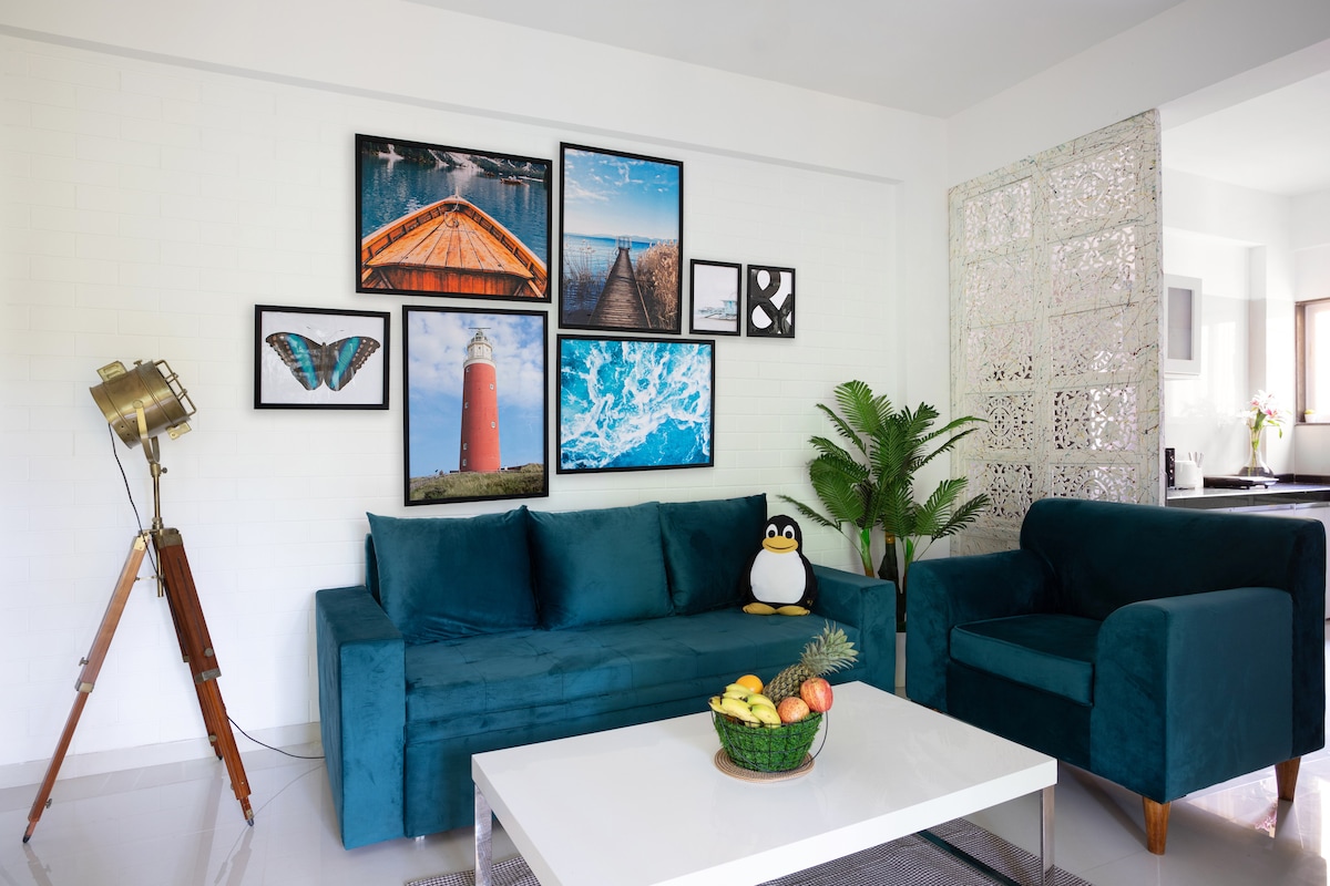 This Place is One of the Unique Sea View Greek Style 1 bedroom with Balcony. Guest can See Waves of Serene Arabian Sea from the Room and Balcony. It has Awestruck ambience, which we created by Handmade Greek style Wall Art Made In the Room & Patio. It Will Surely Mesmerize You While Sipping Tea or Drinks. Its On Anjuna Beach, North Goa having Beautiful Sundowners Like, Purple Martini, Mayan Beach Club, Eva Cafe, Guru Cafe, Slow tide etc, & Eataries, Shacks, Flea market on the Walking distance