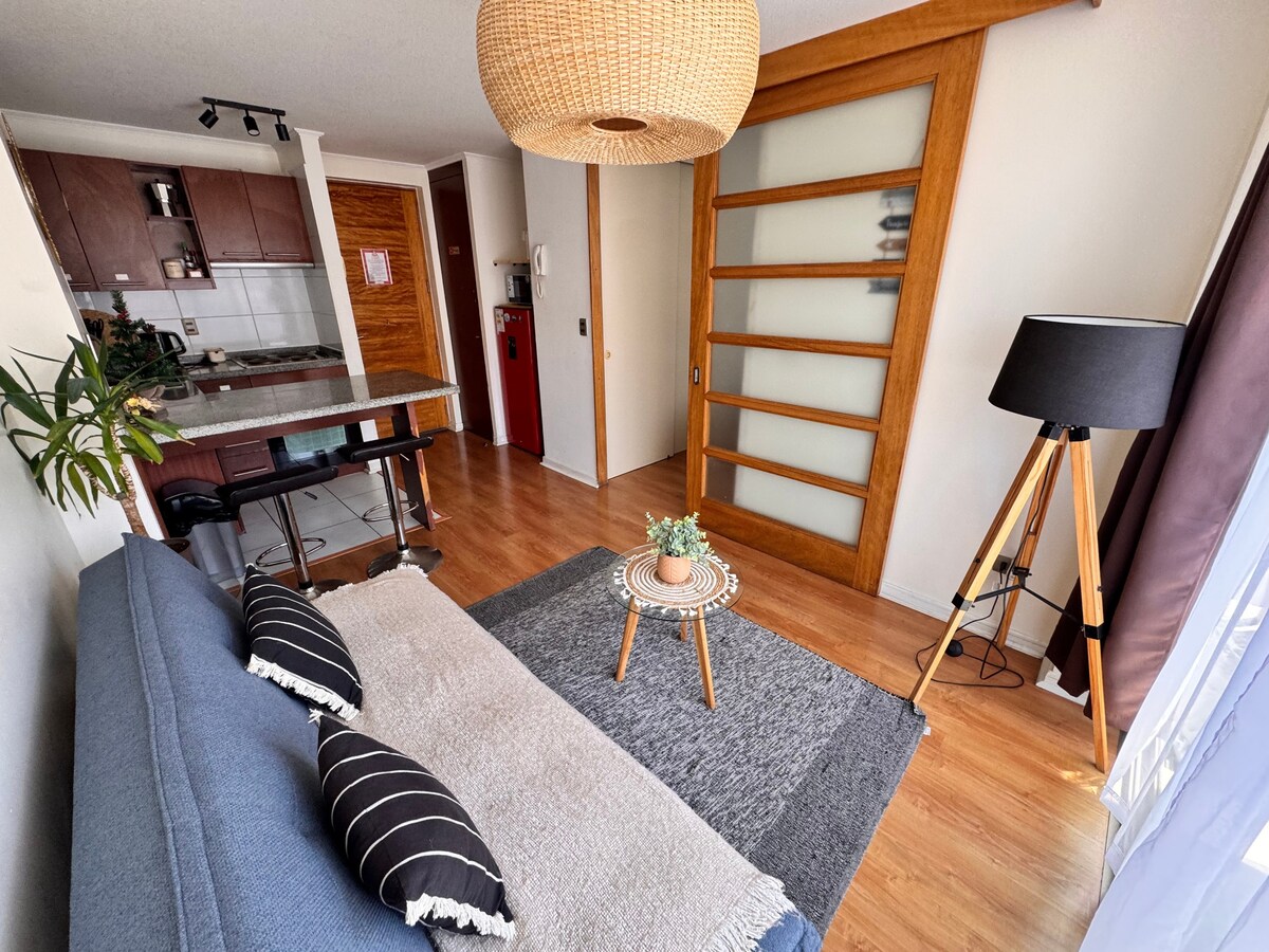 Hermoso departamento que cuenta con 1dormitorios en suite y tv en dormittorio, muy acogedor hermosamente decorado y full equipado para una estadía placentera, con una vista insuperable al mar, ubicado en el centro de la ciudad con muy buena conectividad locomoción a la puerta, supermercado cerca, centro comercial, con estacionamiento privado