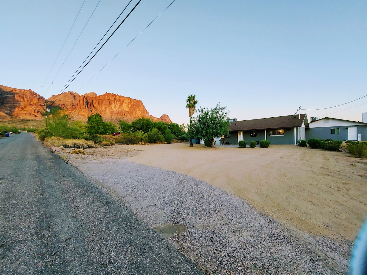 Ranchito Tranquilo is located in the shadow of the beautiful Superstition Mountains on 1.5 acres, less than 30 minutes from two major lakes, bird watching, hiking, horseback riding, river tubing & sideXside off-roading. It's a perfect, quite base camp for your outdoor adventures with plenty of parking for all your toys. Fast Wi-Fi, 3 Roku TV's and ice cold AC. Blackstone grill, firepit, patio seating. 30 min. to airport. We have many guests that return each year so always book early.