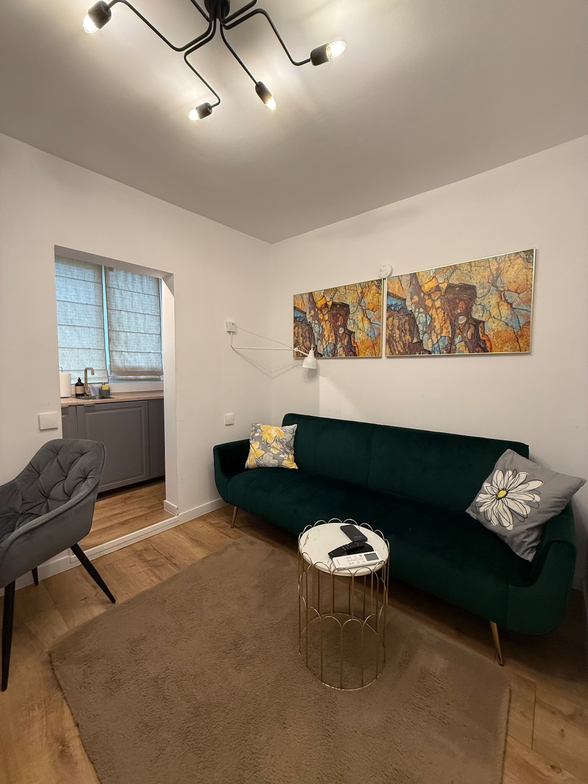Apartament modern, elegant și primitor, ideal pentru sejururi scurte sau business. Dispune de două aere condiționate, balcon, parcare privată și un spațiu dedicat pentru lucru. Mobilat cu designer, oferă confort premium: pat king-size, bucătărie complet utilată, veselă, dotări moderne și un ambient rafinat, locul perfect pentru relaxare și productivitate.