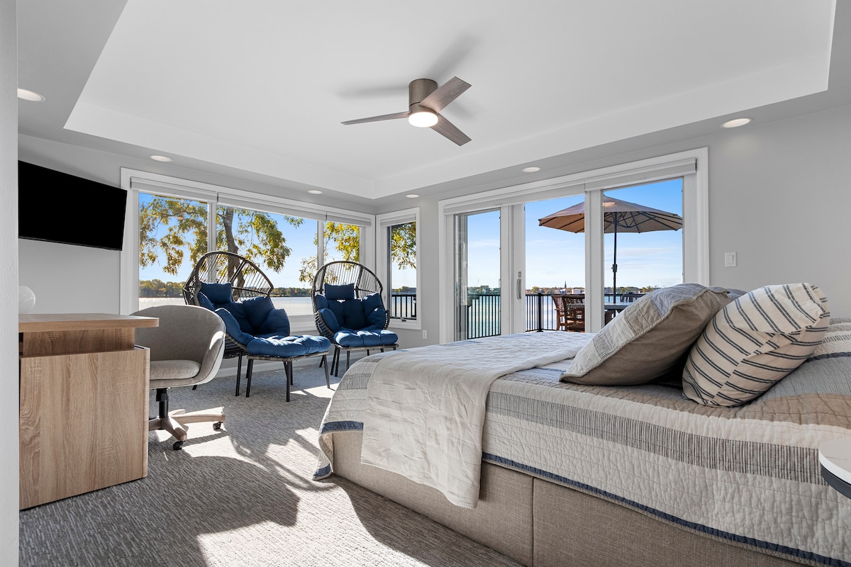 Relax at Sunset Oasis, where stunning lake views and sunsets set the tone for your stay. Sip coffee in the chef’s kitchen, paddle out in kayaks, grill lunch, and dine lakeside. In the evening, cozy up by the fireplace or gather around the firepit under the stars. Stream your favorite shows on the smart TV or explore nearby downtowns just minutes away. This stylish, updated luxury lake house is the perfect escape to unwind, reconnect, and create unforgettable memories.