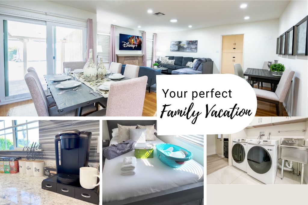 FREE PARKING & COFFEE! Family, child & infant friendly vacation home near Disneyland & Universal Studios Hollywood! 🌟 Prime SGV quiet neighborhood in a cozy & clean home ☕ Free coffee, 🚗 free parking, 65” Smart TV with Disney+, and fast Wi-Fi. Centrally located 15 mins to Downtown LA and 30–45 mins to Disneyland in Orange County, and local beaches. Perfect for relaxing family retreats visiting SoCal. 🚫 No parties, events, or smoking indoors — this is a peaceful, family-focused home.