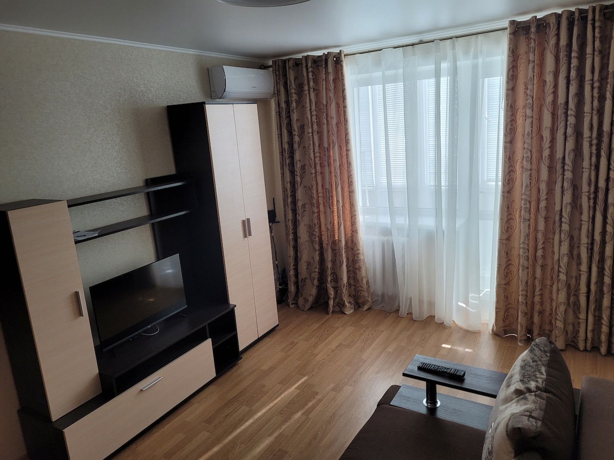 A cozy apartment in the most comfortable area. Opposite the beautiful Pobedy Park, the park has a lake, recreation areas and cozy cafes. The sea is 10 minutes away on foot. Convenient transport junction. 5 minutes' drive to the Arcadia district, where nightclubs, restaurants, shops, beaches, Hawaii water park are concentrated. Easy to get to the historic city center or the train station. There are grocery stores and a mini-bazaar near the house, you can buy fresh fruits and vegetables.