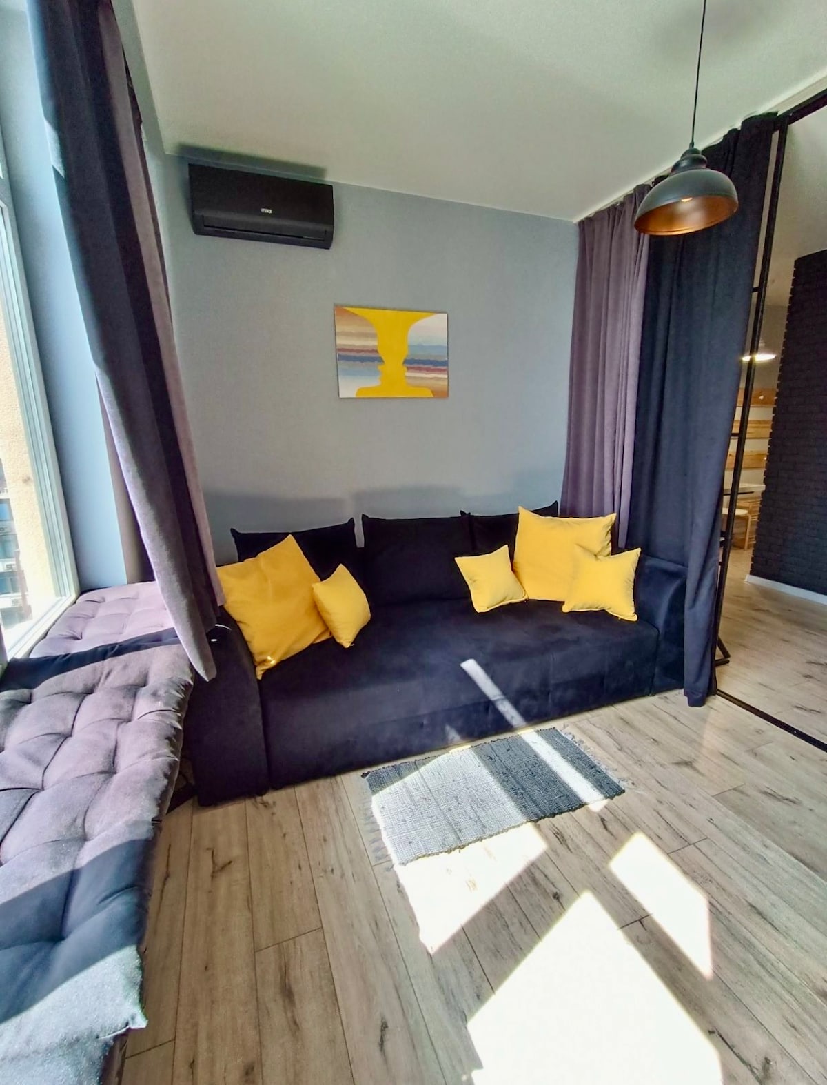 Have a great time with the whole family in this stylish and cozy home. The new apartment is located in a residential complex by the sea, for your convenience we provide a free parking space, from where you can take the elevator to a bright apartment with a balcony. For your convenience, we provide all the necessary household appliances, utensils and hygiene products. The kitchen is in Italian style and the bedroom is filled with soft light where you can relax and recharge