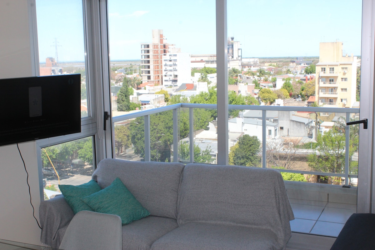This place is one of the few in Santa Fe with a panoramic view of the river from side to side, a stunning setting with the suspension bridge in the background. The space is very comfortable, fully equipped with high-end furniture, has a very large balcony, a super bright bedroom, Comfortable, it has a practical and cozy living room, dining room, and kitchen. Steps away from Boulevard Gálvez and its picturesque restaurants, tea houses, ice cream parlors, and historical and recreational centers.
