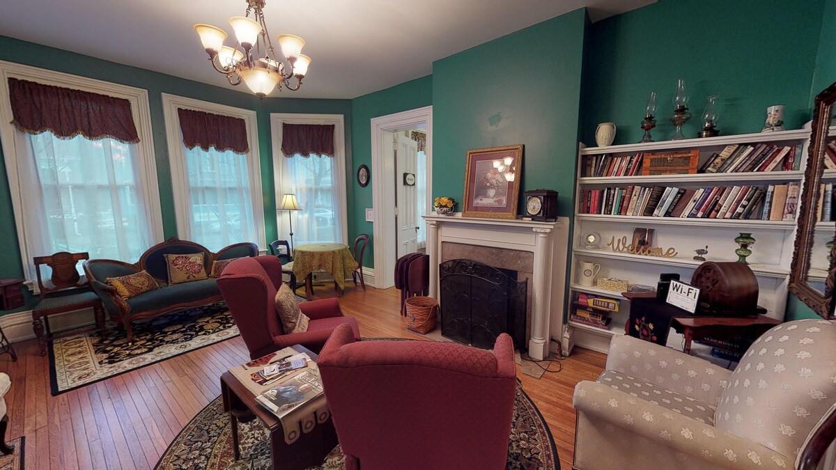 This exuberant 1892 Queen Anne Victorian Bed and Breakfast was built by Dr. Isaac Porter Primrose, and was once the Doctor’s office and the home of his family. The house has fabulous oak trim and floors, colorful stained glass transoms, and original kitchen cabinets with marble counter-top. After being a residence for well over a century, the house has now been completely restored as a Bed and Breakfast. Four colorful Guest rooms offer private baths. Free Breakfast and WIFI available.