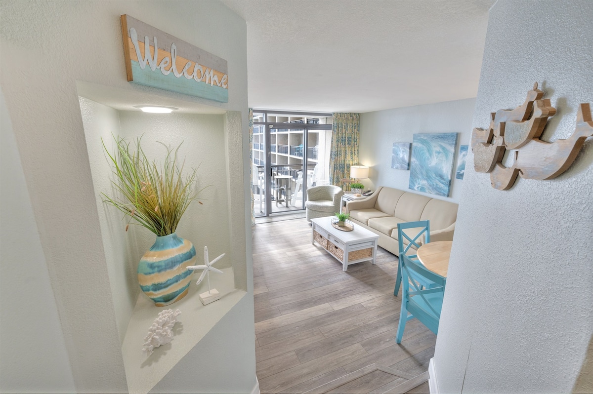 Kick back and relax in this calm, stylish apartment in the heart of Myrtle Beach! Features include a queen bed, full size sleeper sofa, full kitchen, laundry, and study/office. With a huge walk-in closet and plenty of natural light, it’s the perfect getaway. Walk to the beach, Arcadian Shores Golf Club, or Soho bar. Nearby attractions include Barefoot Landing and Tanger Outlets. Located in a gated community with a pool, tennis, pickleball courts, volleyball, BBQ areas, mini-golf, and car wash.