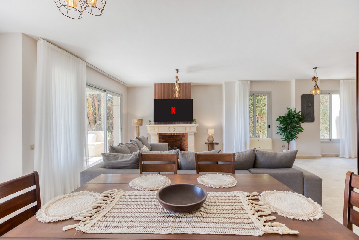 🌟 Luxury 4BR Villa with Private Pool & Open Views 🏊♂️⛳ Welcome to your private escape —a stunning 4-bedroom luxury villa designed for comfort, relaxation, and unforgettable stays ✨ Perfect for families, group trips, and golf getaways, this spacious villa offers elegant interiors, beautiful open views, and seamless indoor-outdoor living. Spend your days relaxing by the private pool, enjoying peaceful garden moments, or dining outdoors under the sun.✨