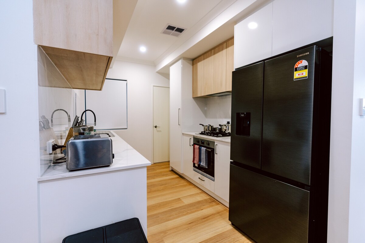 This is a modern house, recently finished construction with a tasteful minimalist decor. Large open space living area with free fast wifi to enjoy your streaming services Netflix/Stan on the large smart TV. Spacious kitchen equipped with all necessary essentials to make you feel at home away from home. Two private bedrooms with queen size beds are available exclusively for your use during your stay. Close to Fiona Stanley, Murdoch hospitals, Cockburn Gateway shops and 20 mins to the CBD.