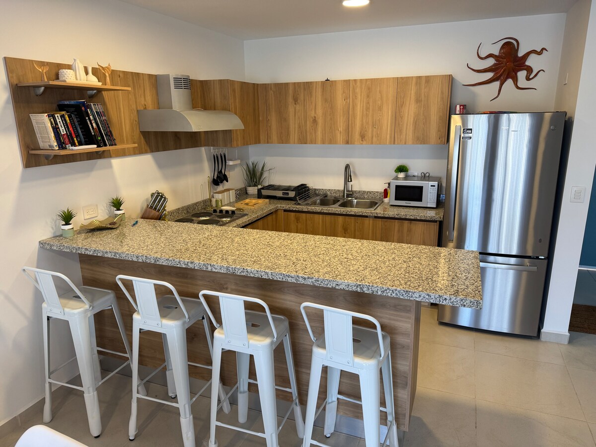 *Fully furnished and equipped 3-bedroom apartment *TERRACE EQUIPPED WITH THE BEST VIEWS OF NUEVO ALTATA. *Master bedroom with king size bed, Smart TV, walk-in closet and private bathroom *Bedroom 2 with king-size bed and Smart TV *Bedroom 3 with 2 single beds *Mini-splits in all bedrooms, living-dining room *Equipped kitchen and breakfast bar with 3 benches *Dining room with 6 chairs *Large living room with Smart TV *Common areas and pools a few meters away and 2 parking spaces