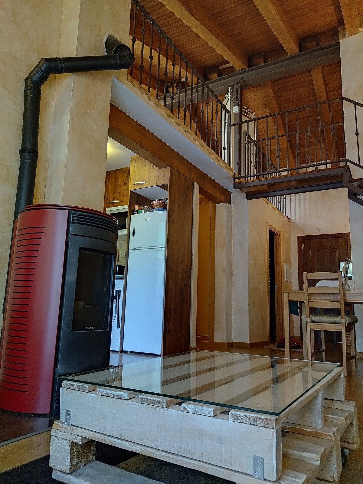 Elegant and spacious, ideal to enjoy as a couple or with the family. Its high wooden ceilings relax and impress. Prepared for winter with a pellet stove and heat pump and for summer with air conditioning. The views from the living room or the terrace leave no one indifferent and its cozy attic makes the apartment a charming and romantic place. Wi-Fi and smart TV.
