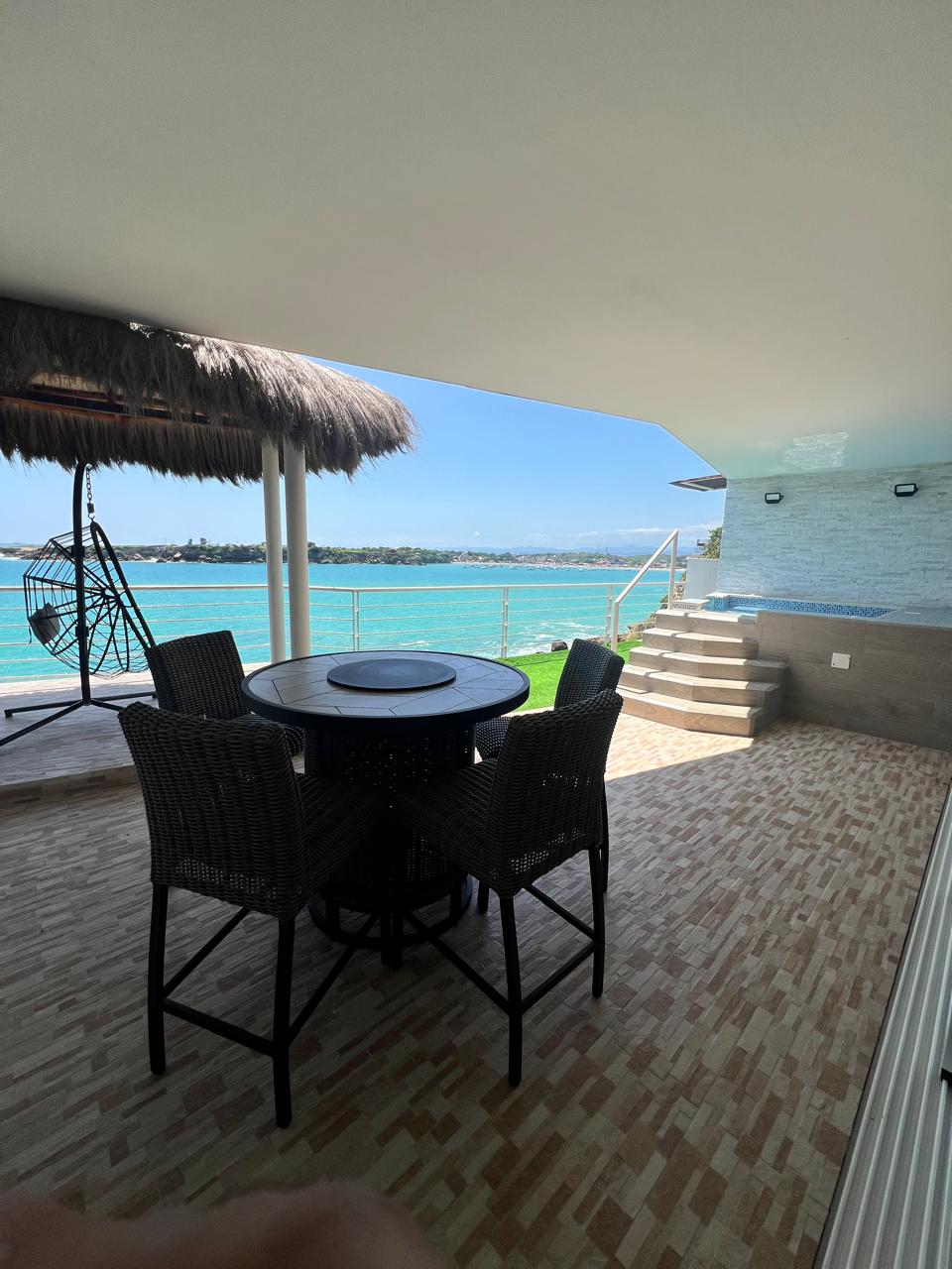 Oceanfront paradise. Escape to this oceanfront oasis, a few steps from the beach, where tranquility is combined with proximity to vibrant Montañita. Enjoy peace at home and just a 15-minute walk down the beach, immerse yourself in the action, restaurants and nightlife. A perfect combination for an unforgettable vacation! This beautiful house offers stunning panoramic views, decorated with a beachy and relaxing vibe, invites harmony and recharging of energies.