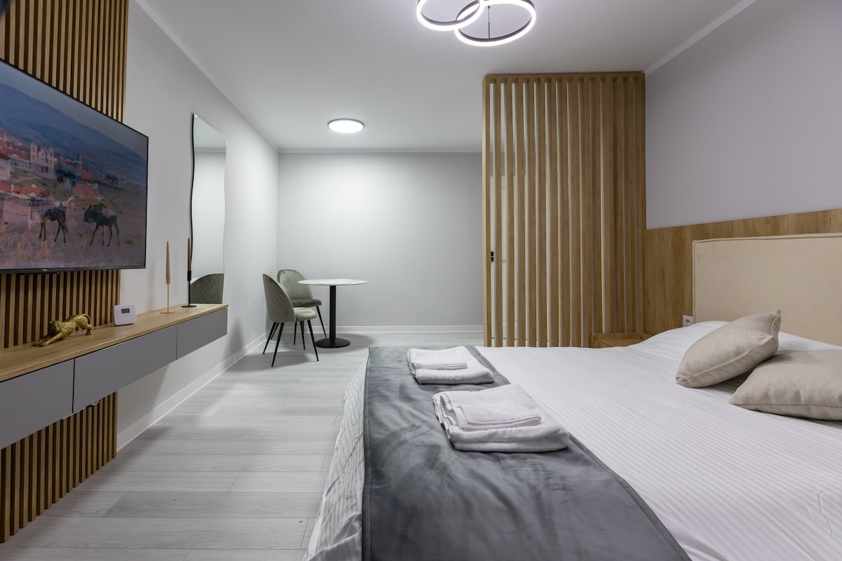 Enjoy the coziness of a modern apartment. Stylish ✔ living room – extendable sofa, dinner table. Comfortable ✔ bedroom – queen size bed, walk-in dressing room. ✔ Fully equipped kitchen – modern first use appliances, solid wood dining table. Modern ✔ bathroom – walk-in cabin Free ✔ WiFi and Smart TV. Great 📍 location, close to shops, restaurants and transportation. Ideal for tourists and business trips We are waiting for you for a great stay!