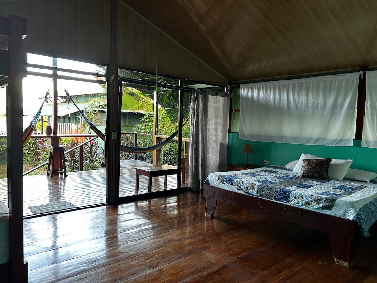 Welcome to Rooted in Love, your jungle casita with all the modern amenities to comfortably experience the jungle. This little bungalo is perfect for those wanting accessible nature yet connected to a traditional Tico village. From your room you can often observe the titi monkeys jumping tree to tree or magnificent birds on this beautiful reforested property. A yoga shala/ temple, silks, and bamboo merkaba for meditation are all available for your use. Come relax and heal in the rainforest!