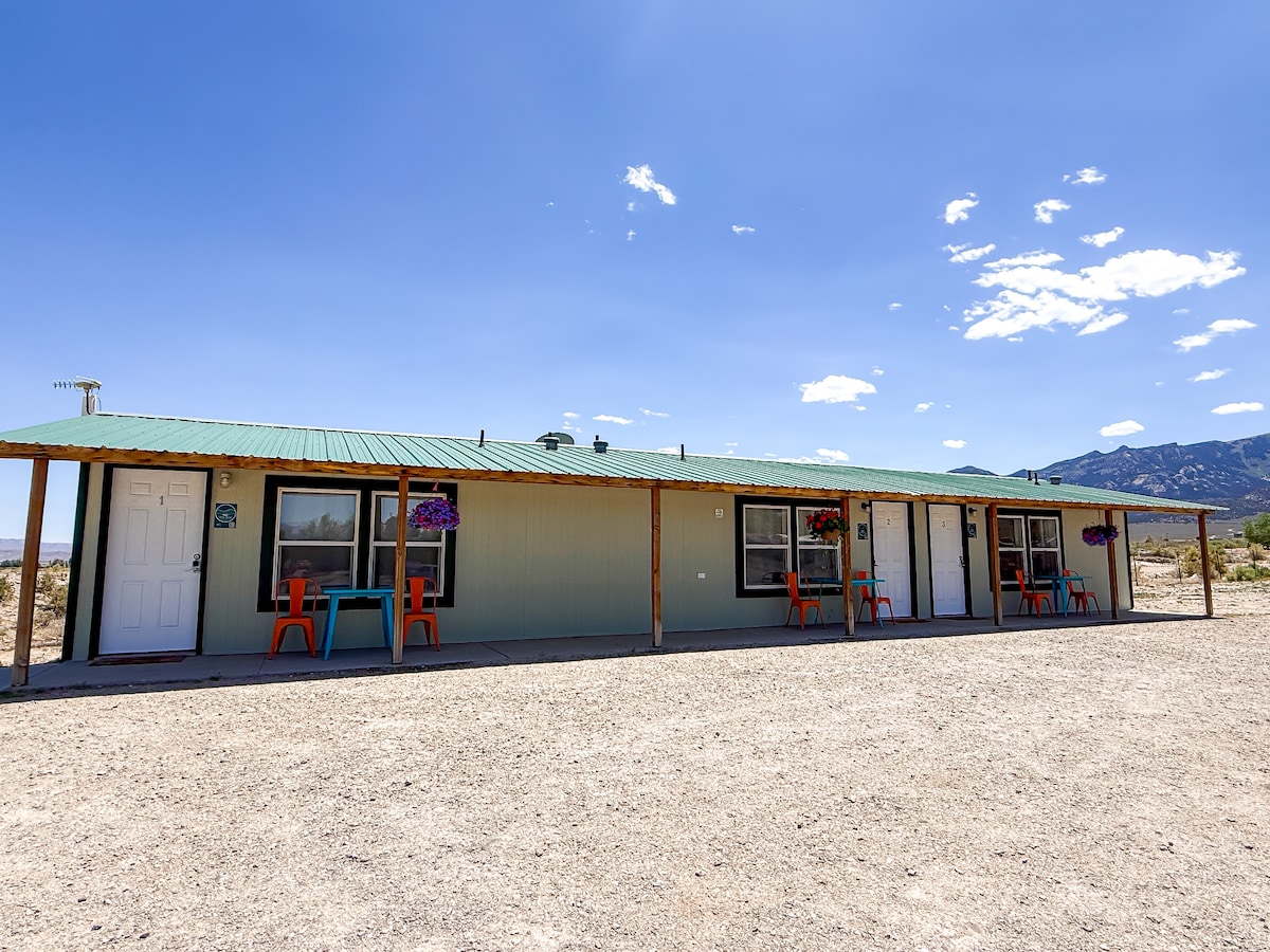 This charming room offers a great spot to base yourself while exploring all that the Great Basin area has to offer. It’s one of three attached motel rooms. While the rooms are small, we've made sure they’re comfortable and welcoming for guests. Perfect for 2 adults (3 max), the futon can also accommodate 1 adult or 2 children if needed. Whether you're here for hiking, stargazing, or just relaxing, this spot is a great place to rest up between adventures. (Exact bedding may vary.)