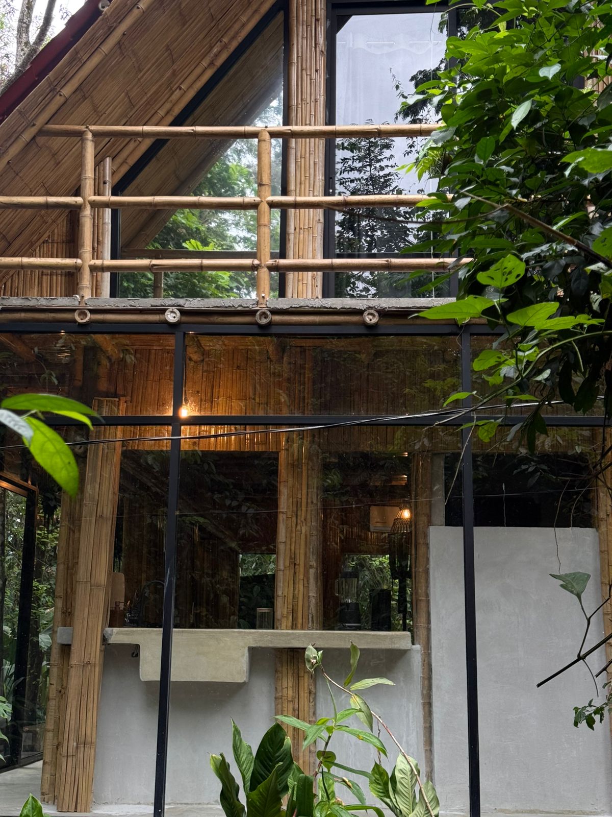 Cabaña de bambú de 2 plantas, muy luminosa, con amplios espacios e increíbles vistas desde sus ventanales. Ubicada frente a cascada natural, dentro de una propiedad privada.