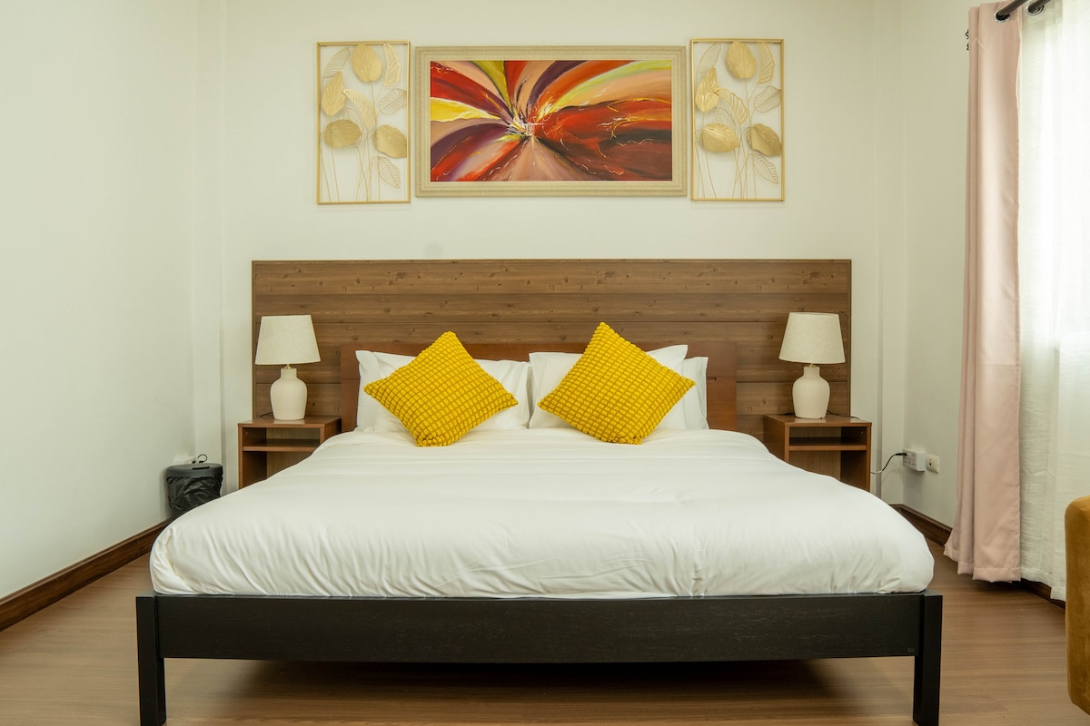 A Charming 2-bedroom, 1-bathroom house with a relaxing outdoor space with nearby local market and 7-11. ☆LIVING ROOM☆ Nice and Living Room with AC ✅ Cozy Comfy Sofa ✅ Smart TV ☆DINING AREA☆ ✅ Microwave ✅ Refrigerator ✅ Tableware ✅ Hot Water Kettle ✅ Toaster ☆2 BEDROOMS☆ ✅ Master Bedroom: King Size Bed +Mattress (Optional for less than 4 guest, please inform us if you need it) ✅ Bedroom 2: Queen Size Bed ☆BATHROOM AREA☆ ✅ Sink ✅ Washing Machine ☆OUTDOOR☆ ✅ Big Spacious Private Outdoor Garden