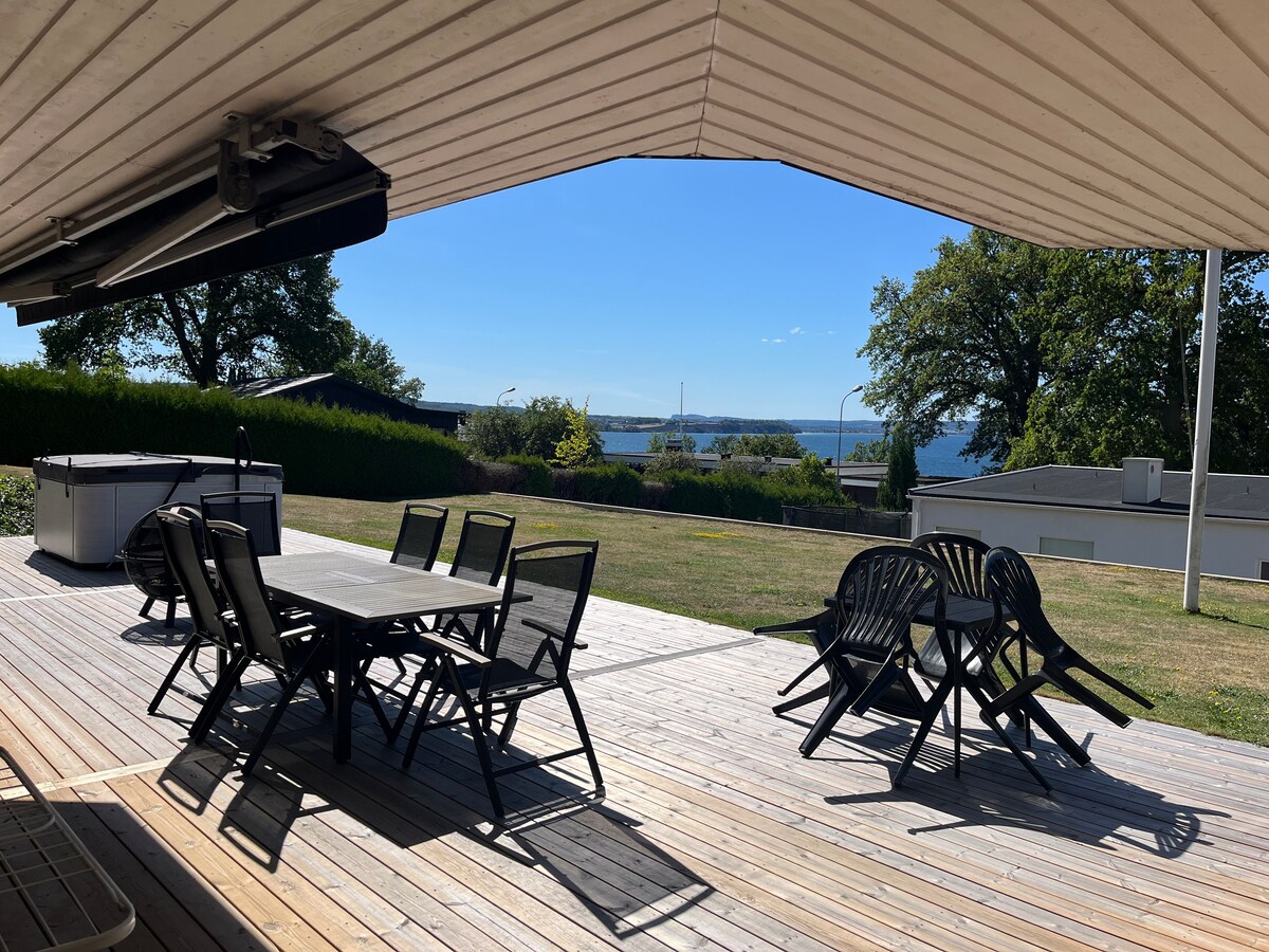 Newly built apartment in a villa in Jönköping with beautiful views of Bårarps hills. Comfortable accommodation in top condition with own entrance & self checknikg. We who live in the villa are a quiet family with children. Comfortable beds, one 160 cm double and one 80 cm. Kitchen with fridge, freezer compartment, oven, microwave, equipment. Fresh bathroom with shower and washing machine. Underfloor heating & modern ventilation. Fan but no AC. Great location. Can be reached quickly from E4, road 40, Elmia & city center. Free parking on the street. A stone's throw from the bus line.