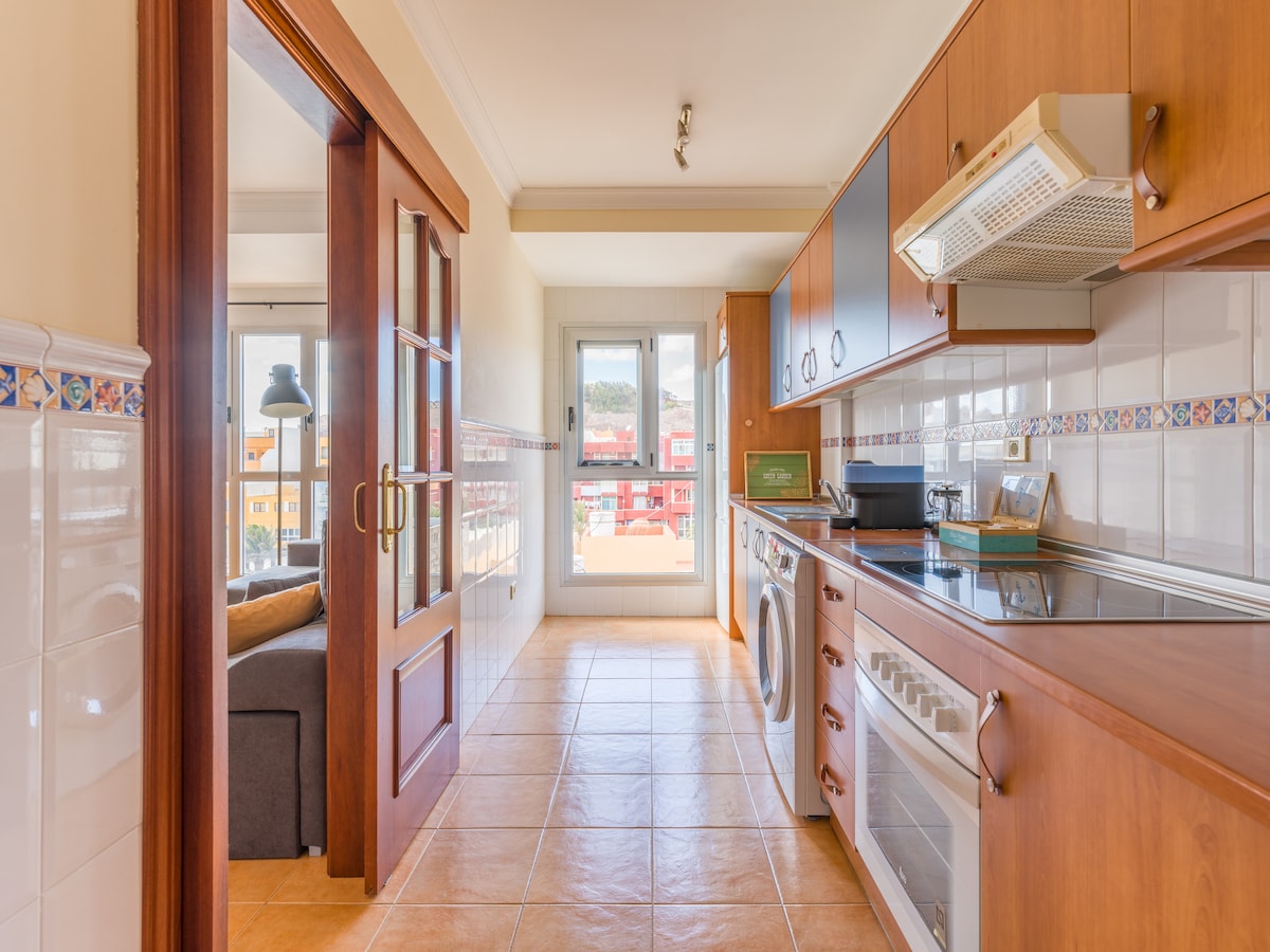 An apartment with a porch to enjoy moments and incredible views. You can enjoy dinner or the jacuzzi. It has everything you need. It is in a private space that consists of only 2 apartments, with a swimming pool and solarium surrounded by plants and flowers, creating a space of total tranquility ideal for resting or working while enjoying nature and just a 10-minute drive from Las Palmas.