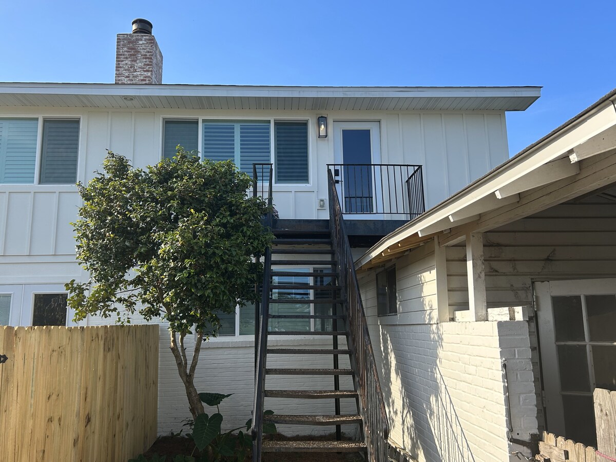 Explore downtown Pensacola and visit the world-class white sand beaches of Pensacola from this cozy carriage house abode located within walking distance from restaurants, shopping, museums, and nightlife. Stone floors, lots of natural light, and high ceilings. Relax on a private balcony while you sip your morning coffee after a restful night's sleep in a comfy bed with high quality linens. HD TV and a wireless JBL speaker to play your tunes. Full kitchen with everything you need to cook a meal. Ample closet space for all your things and a full size washer & dryer.