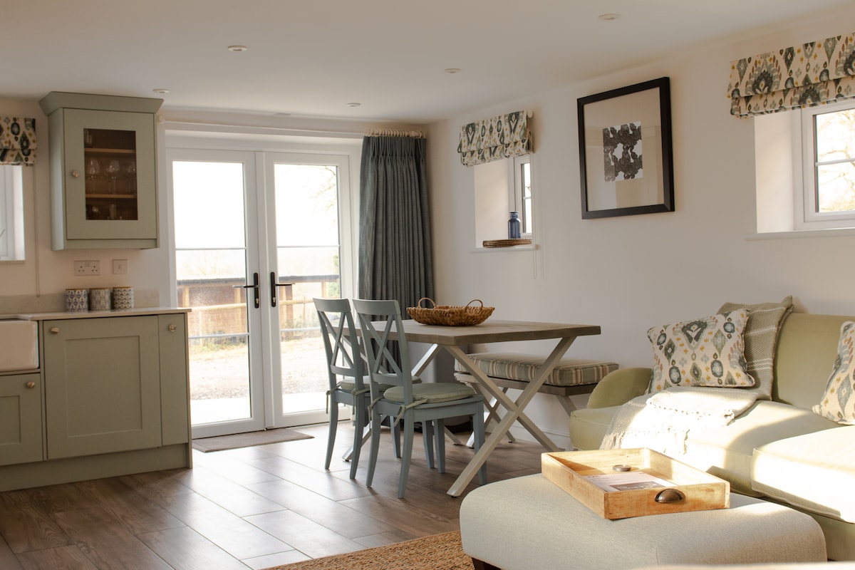 Beautiful barn conversion, sleeps up to 4 + an infant with stunning mezzanine level bedroom, king size bed with vaulted ceiling. Open plan living optional use of double sofa bed. Well equipped kitchen including Nespresso coffee machine. Use of indoor swimming pool and outdoor Hydropool hot tub. Private garden with rattan furniture. Award winning artisan Farm Shop with café and bakery all onsite. Keys are collected using a keybox so this gives you flexibility on arrival and departure times.