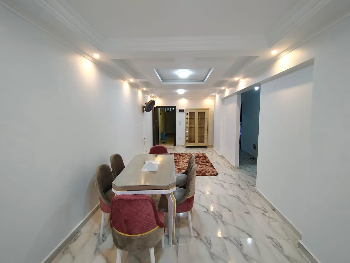 Getaway in Alexandria: Spacious 3-Bedroom Retreat! Discover your ideal escape in Roshdy, one of Alexandria's safest and most upscale neighborhoods! This newly renovated 3-bedroom retreat is perfect! Key Features: - Prime Location:Just 2 blocks from the sea! - Modern Amenities:Elevator, high-speed internet, self check-in, free parking, and four TVs! - Family-Friendly:Close to local entertainment! Experience luxury and convenience in your upscale home away from home!